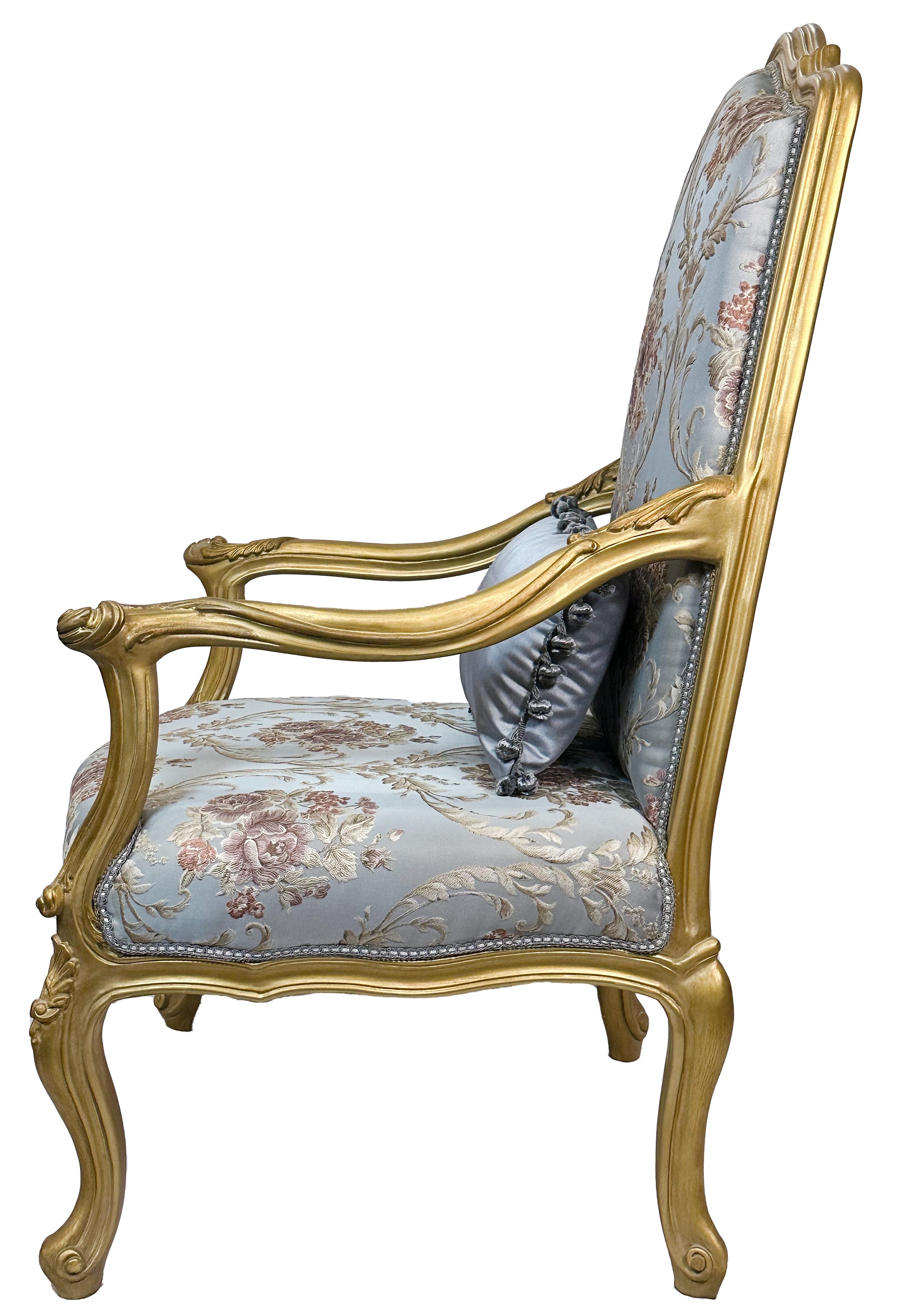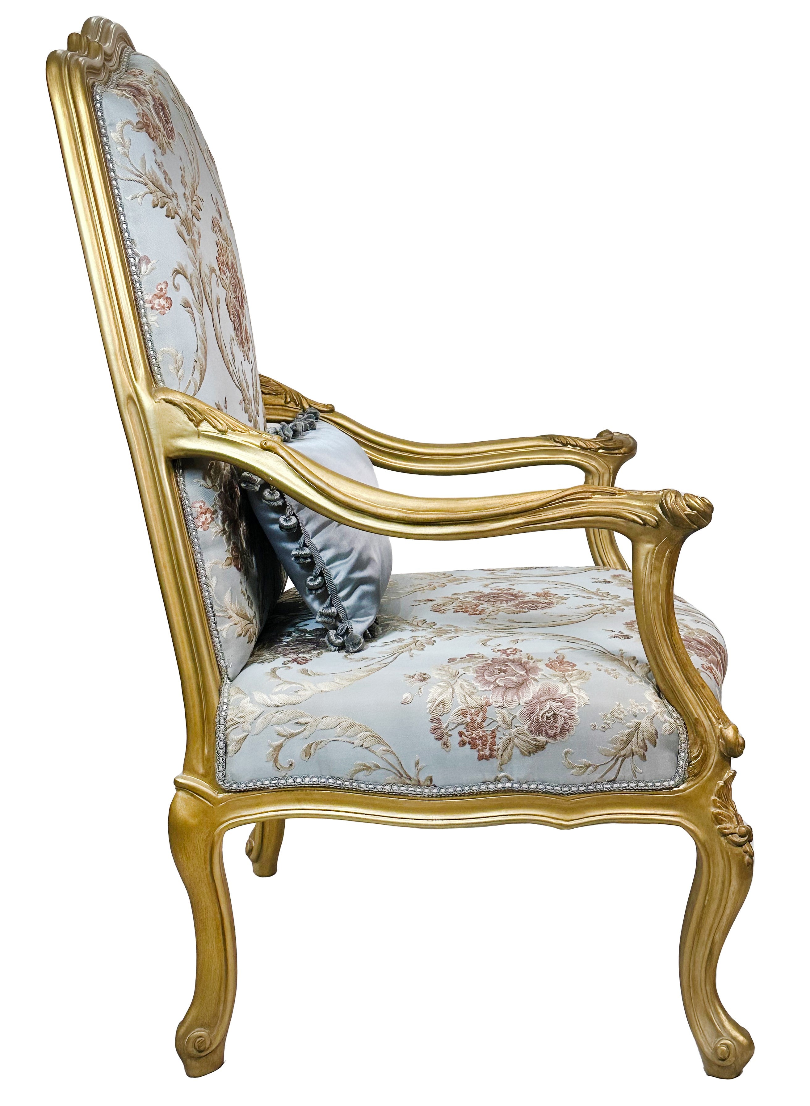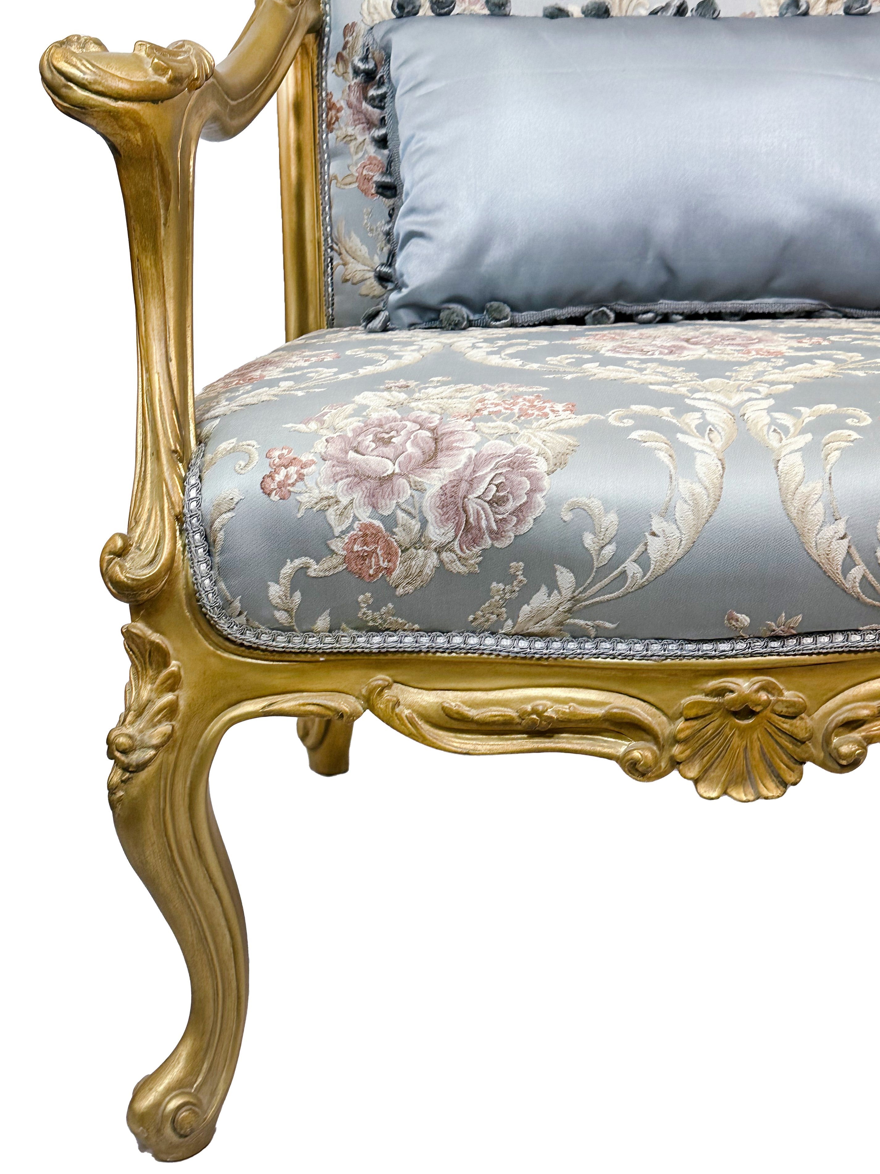 Set of two French Style Armchairs Light Blue Gold Leaf Antique Finish