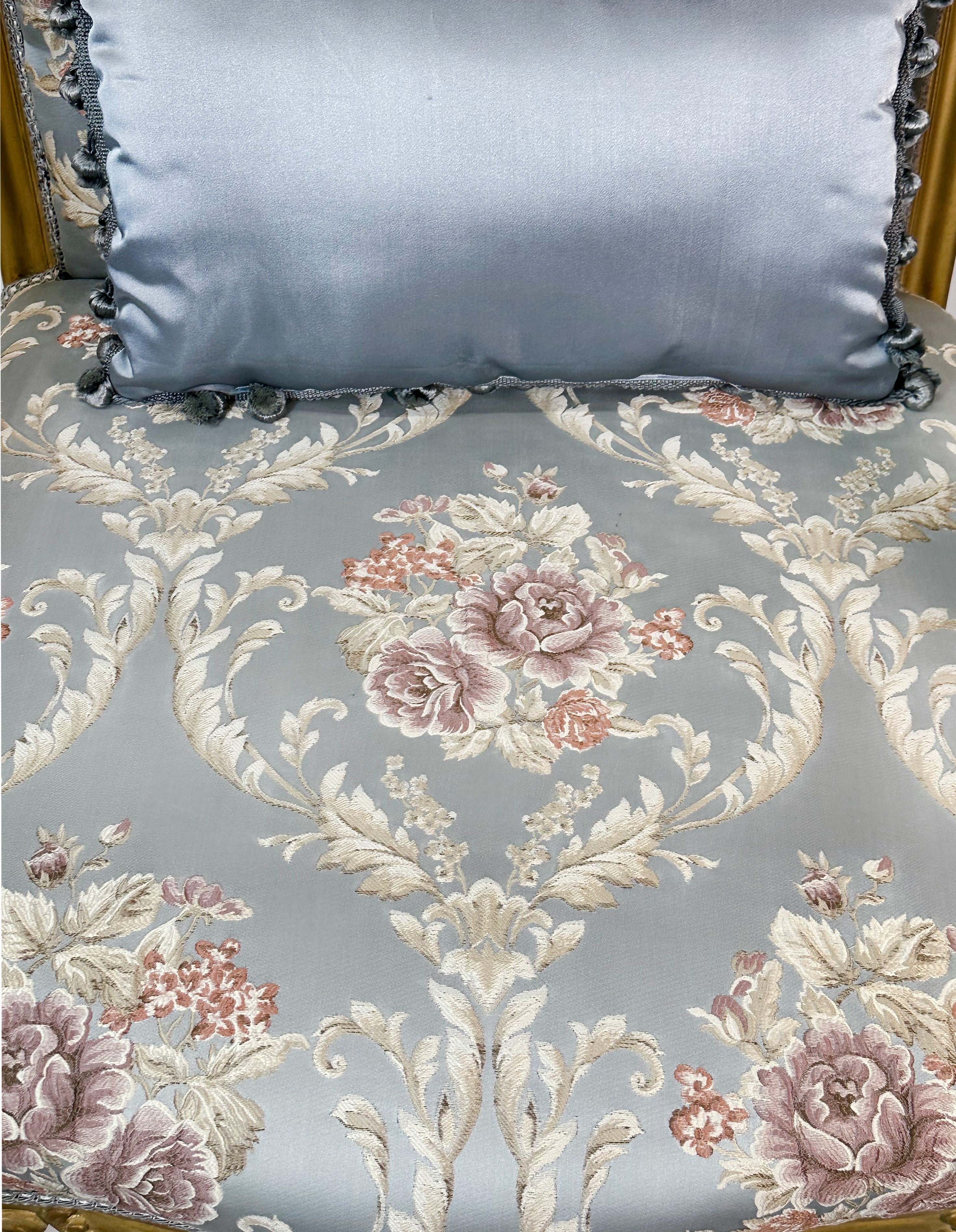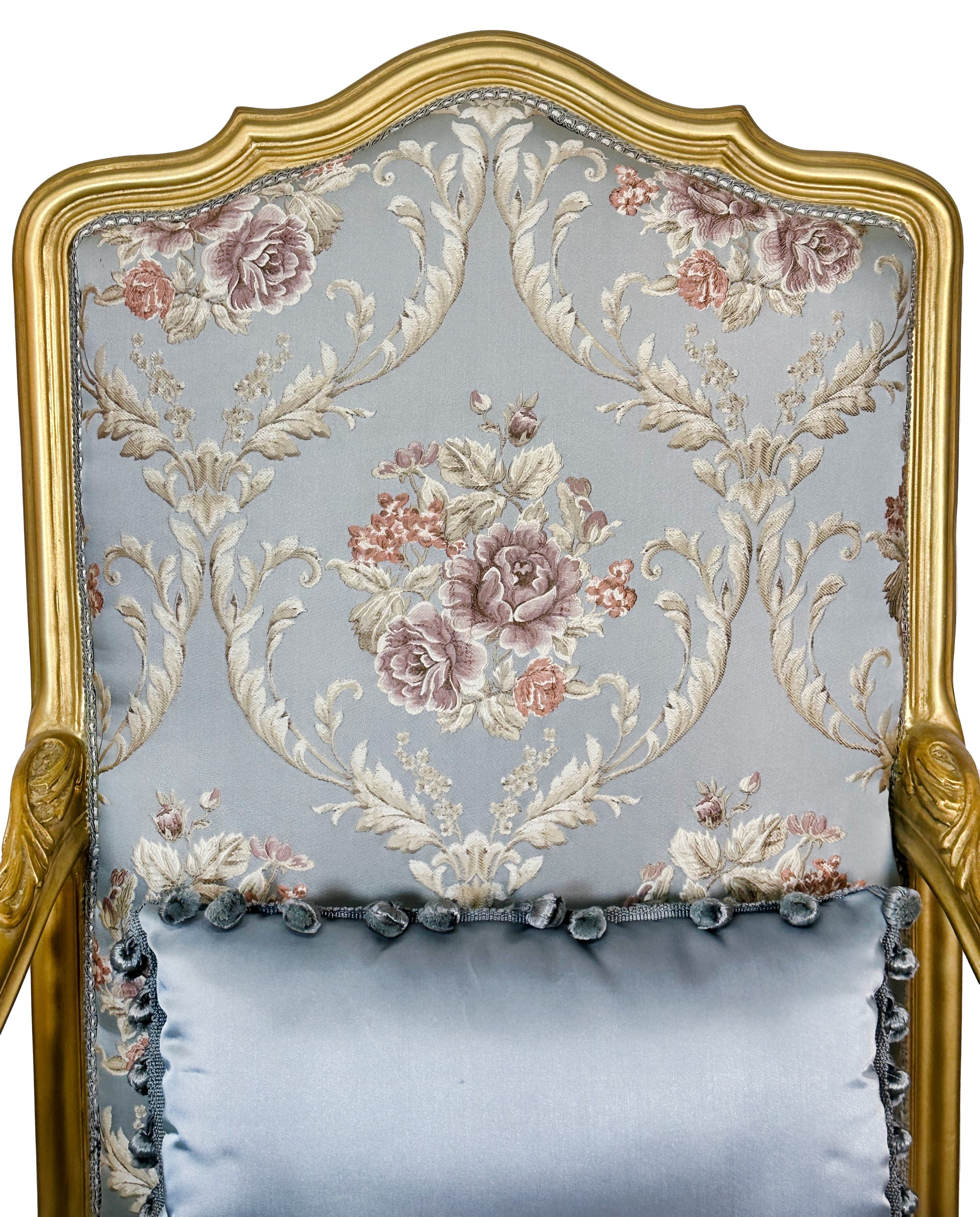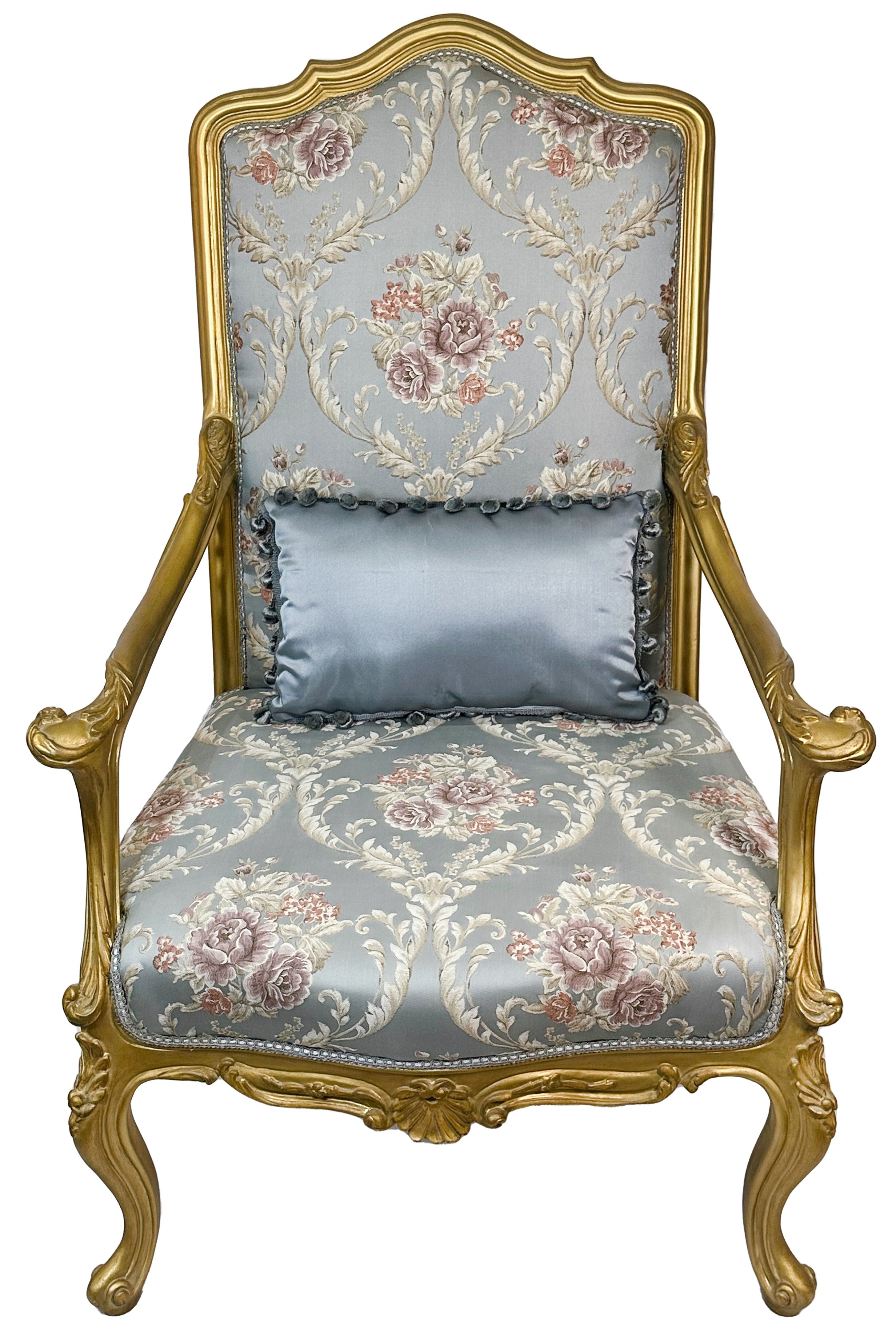 Set of two French Style Armchairs Light Blue Gold Leaf Antique Finish