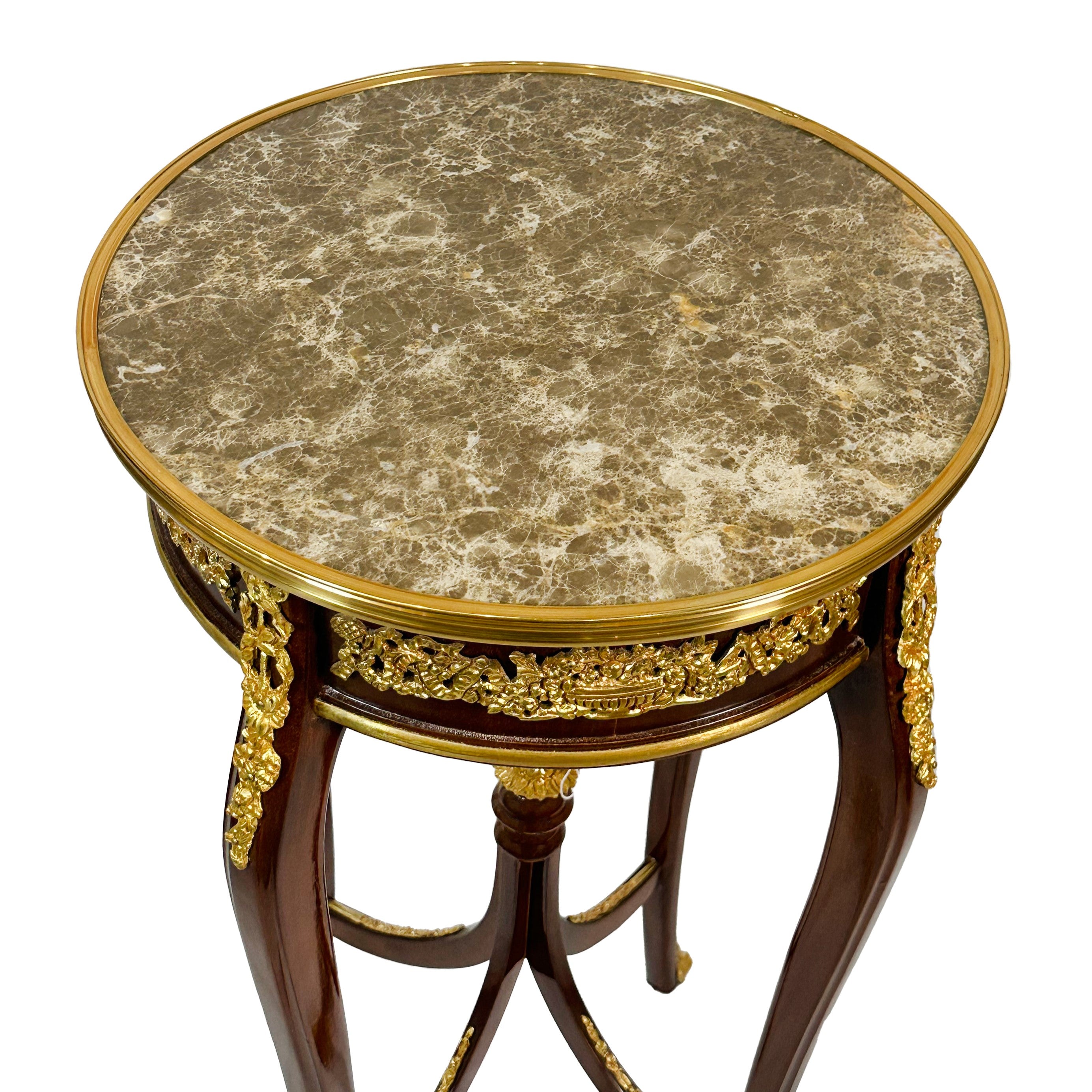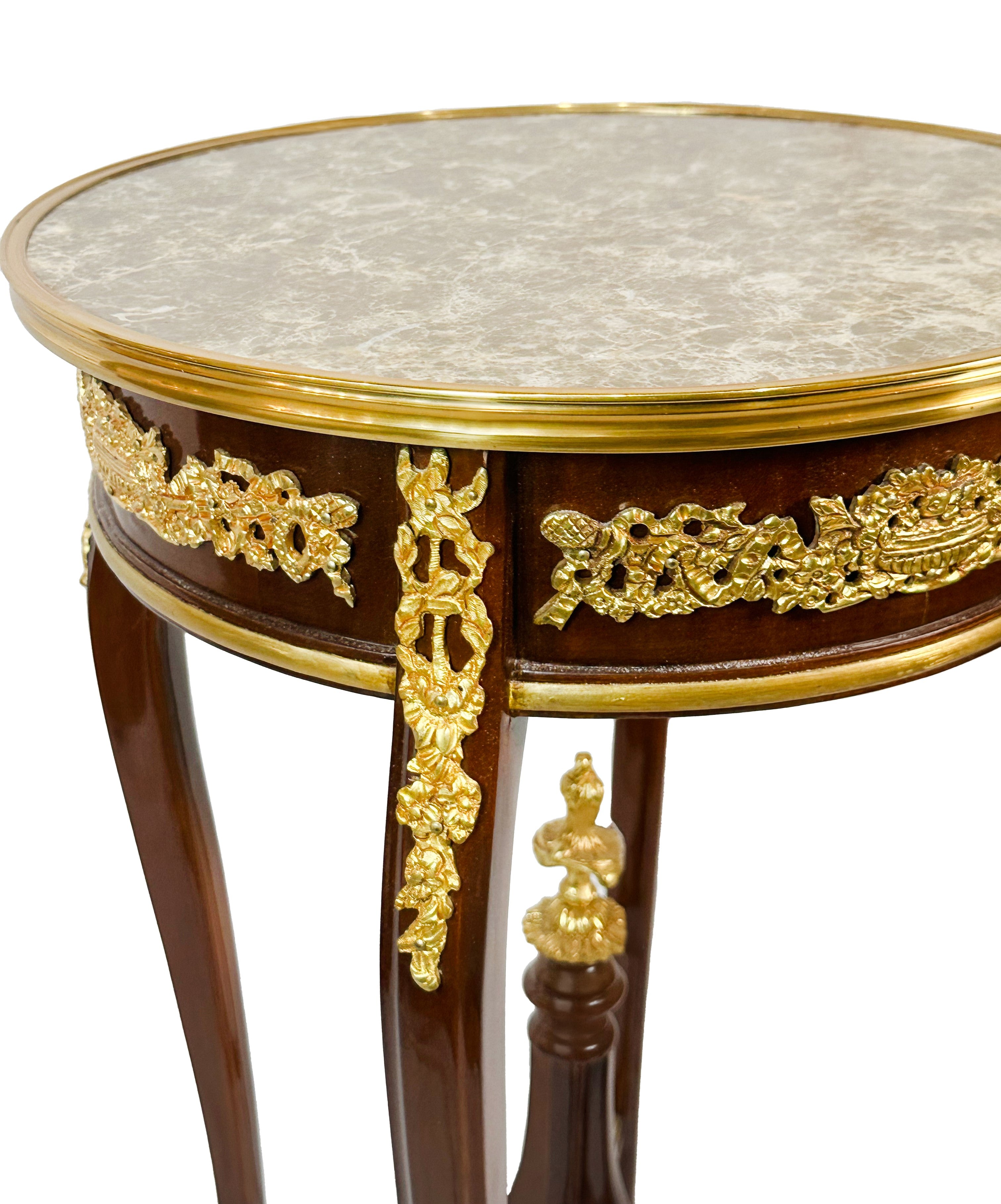 Accent Table 4 Legs Inlay Finish with Brass and Marble Top