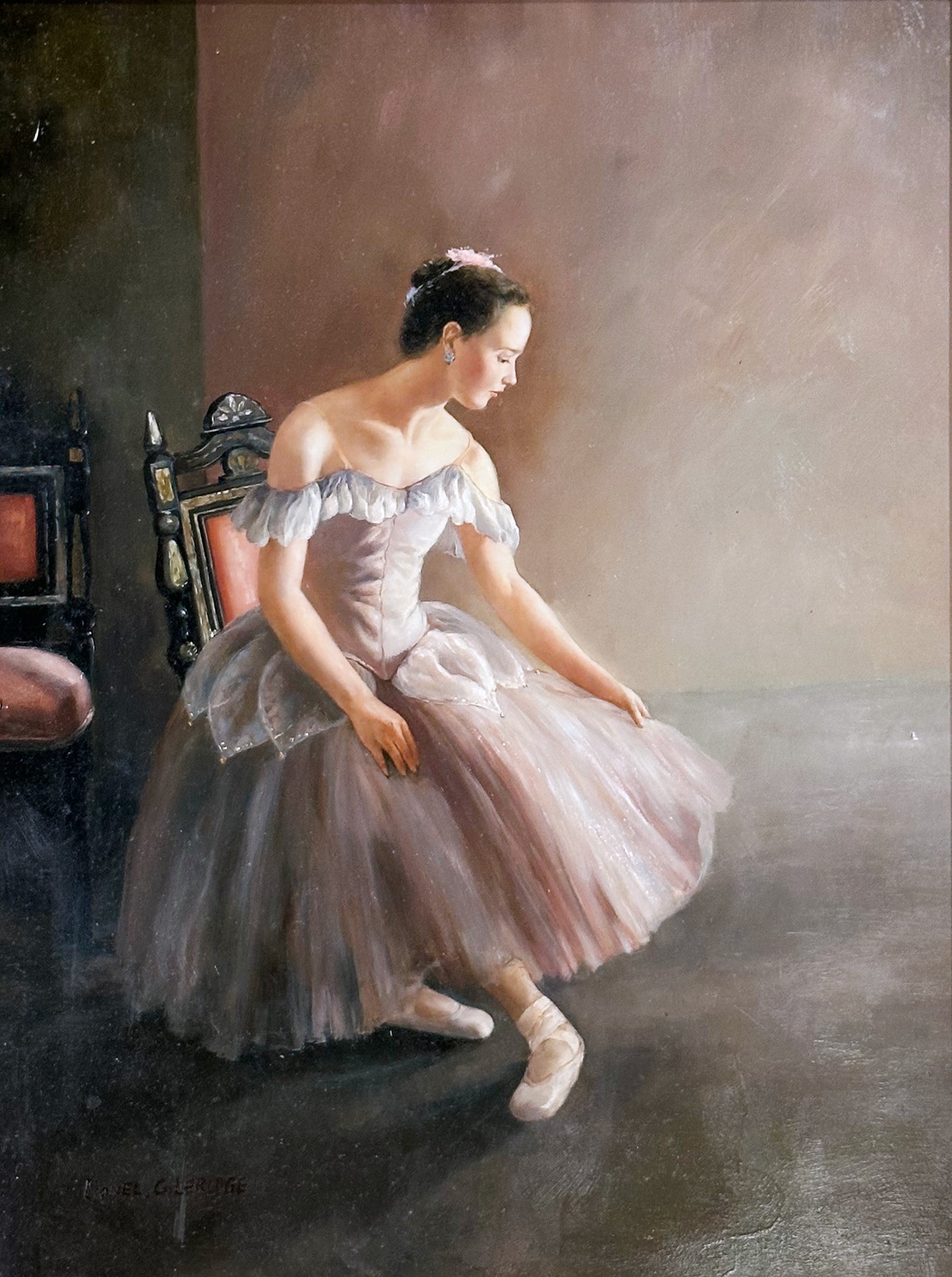 Beautiful Vintage Oil on Canvas Ballerina Decorative Painting.