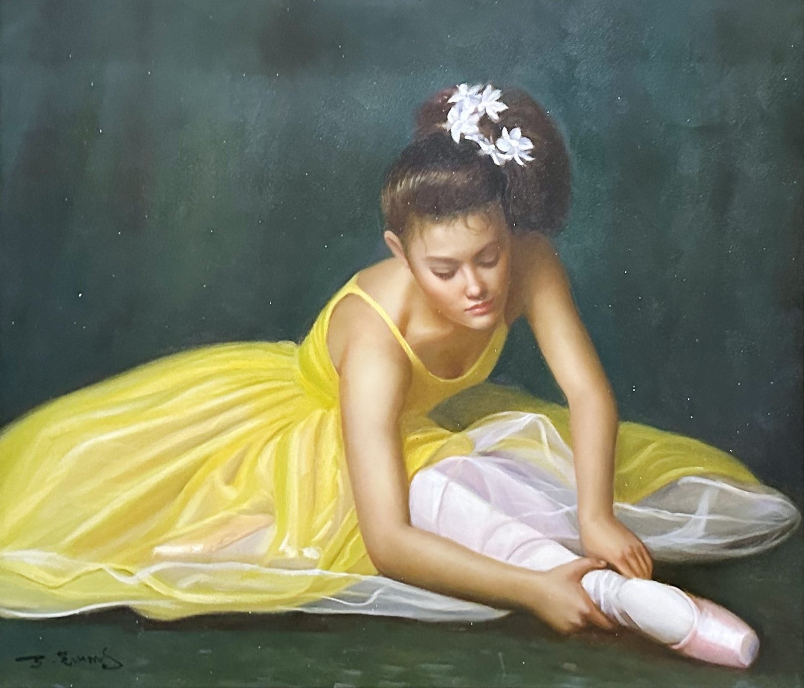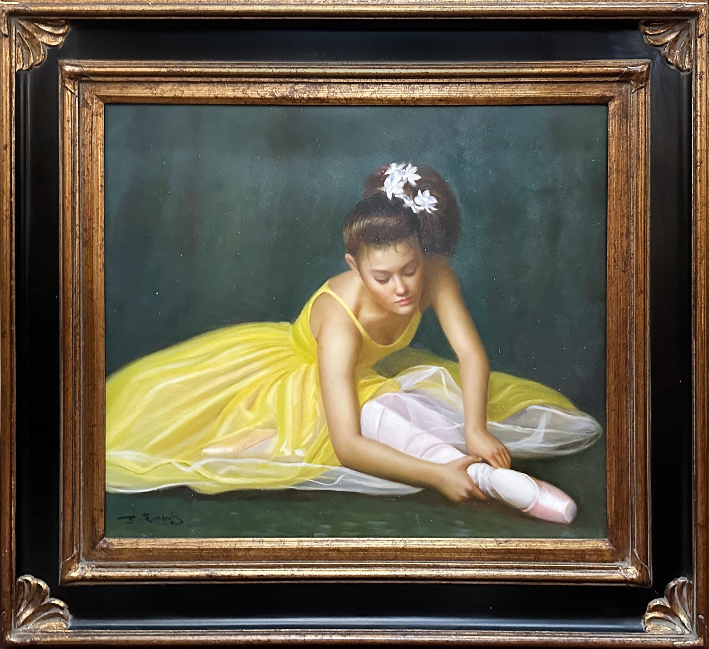 Beautiful Oil on Canvas Ballerina Decorative Painting. Signed by the artist. Custom framed with luxury gallery frame. Approximate frame size 29” x 33” x 1”. Approximate canvas size 20” x 24”.