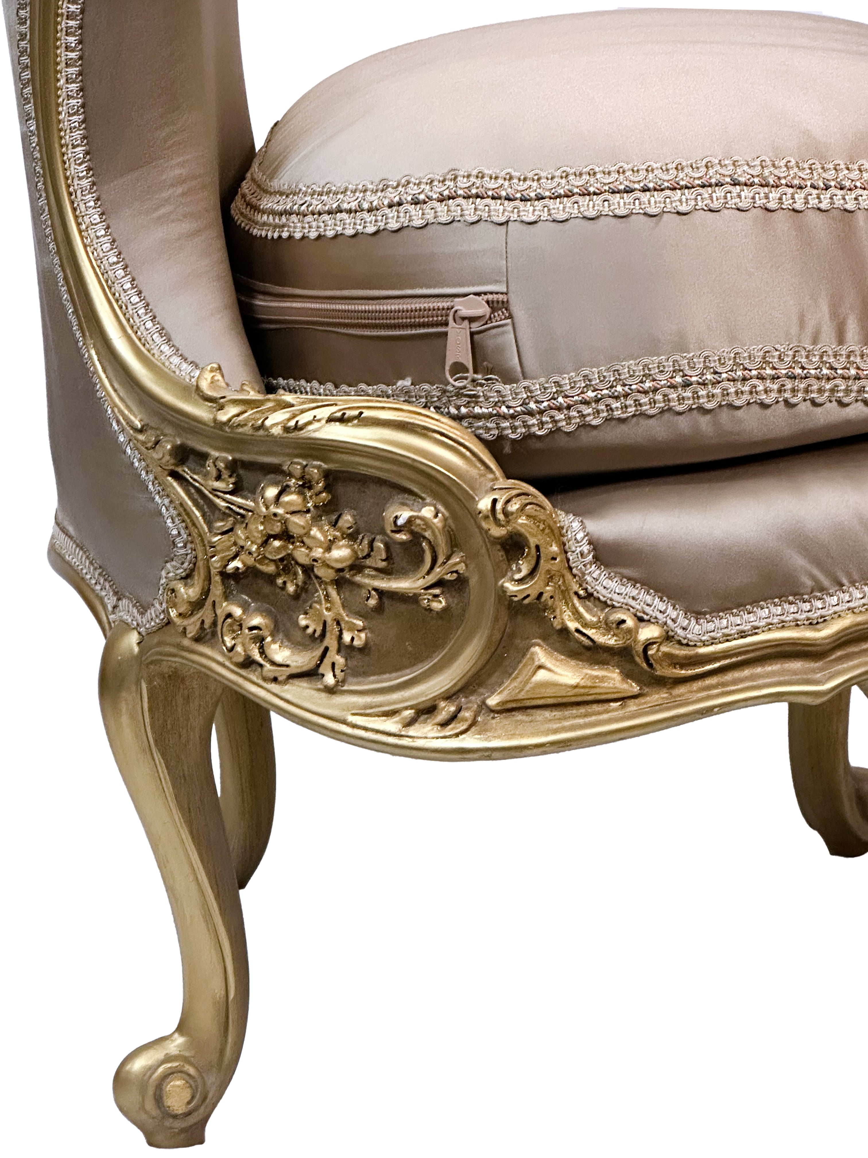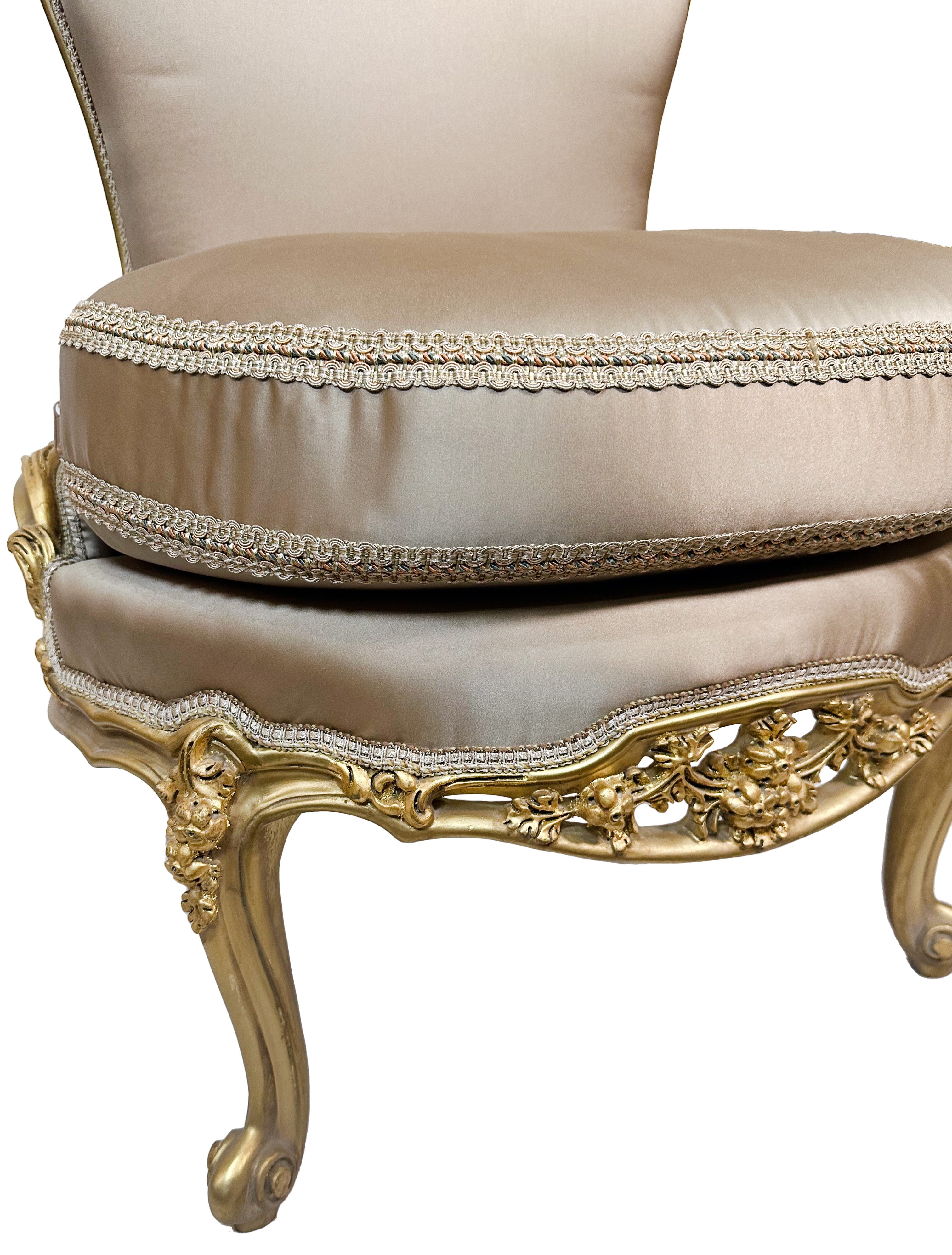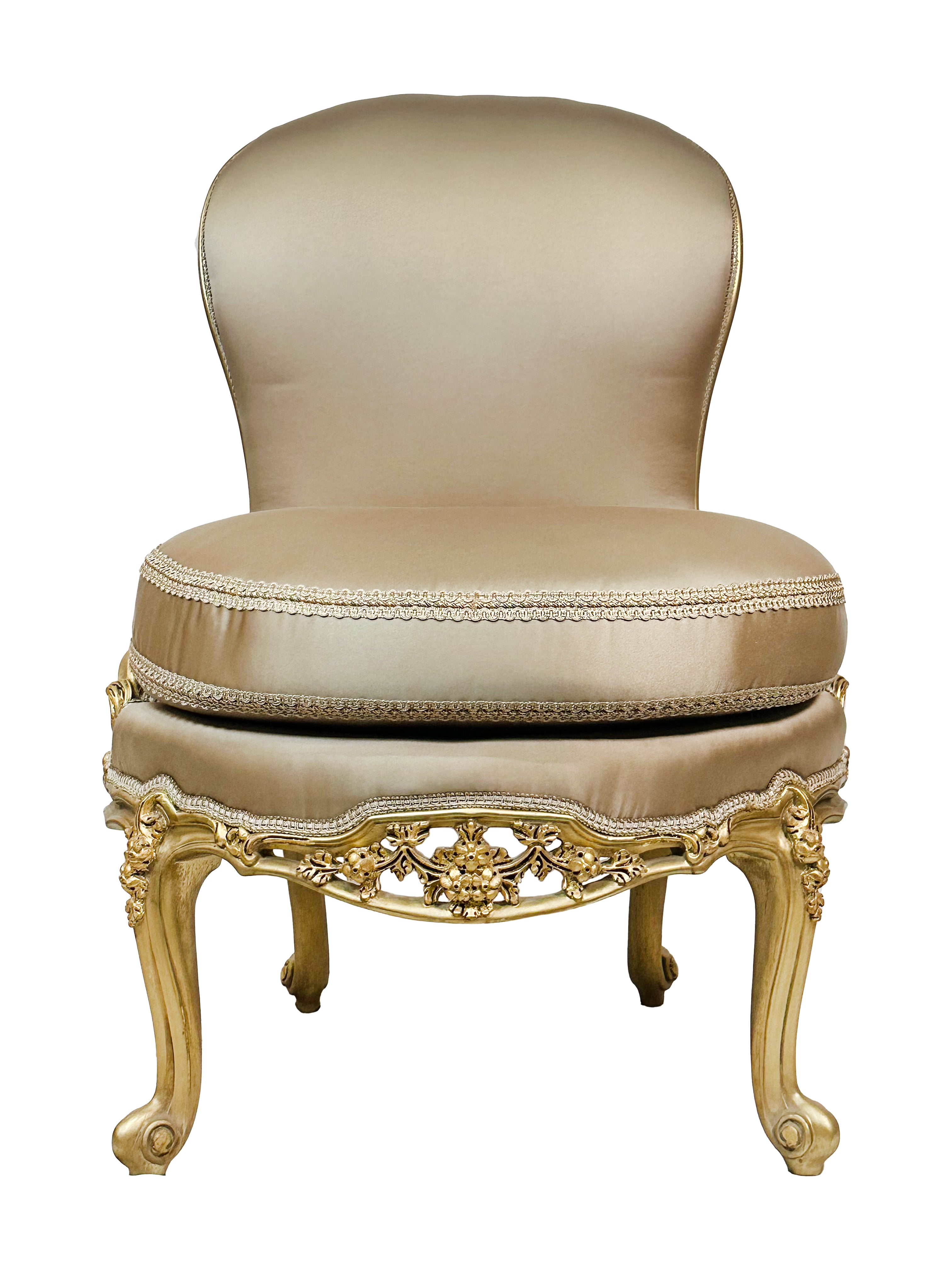 Antique Finish Accent Chair Gold Leaf Depth size: 19"Height size: 20,5" / 37"Wide size: 22" All our...