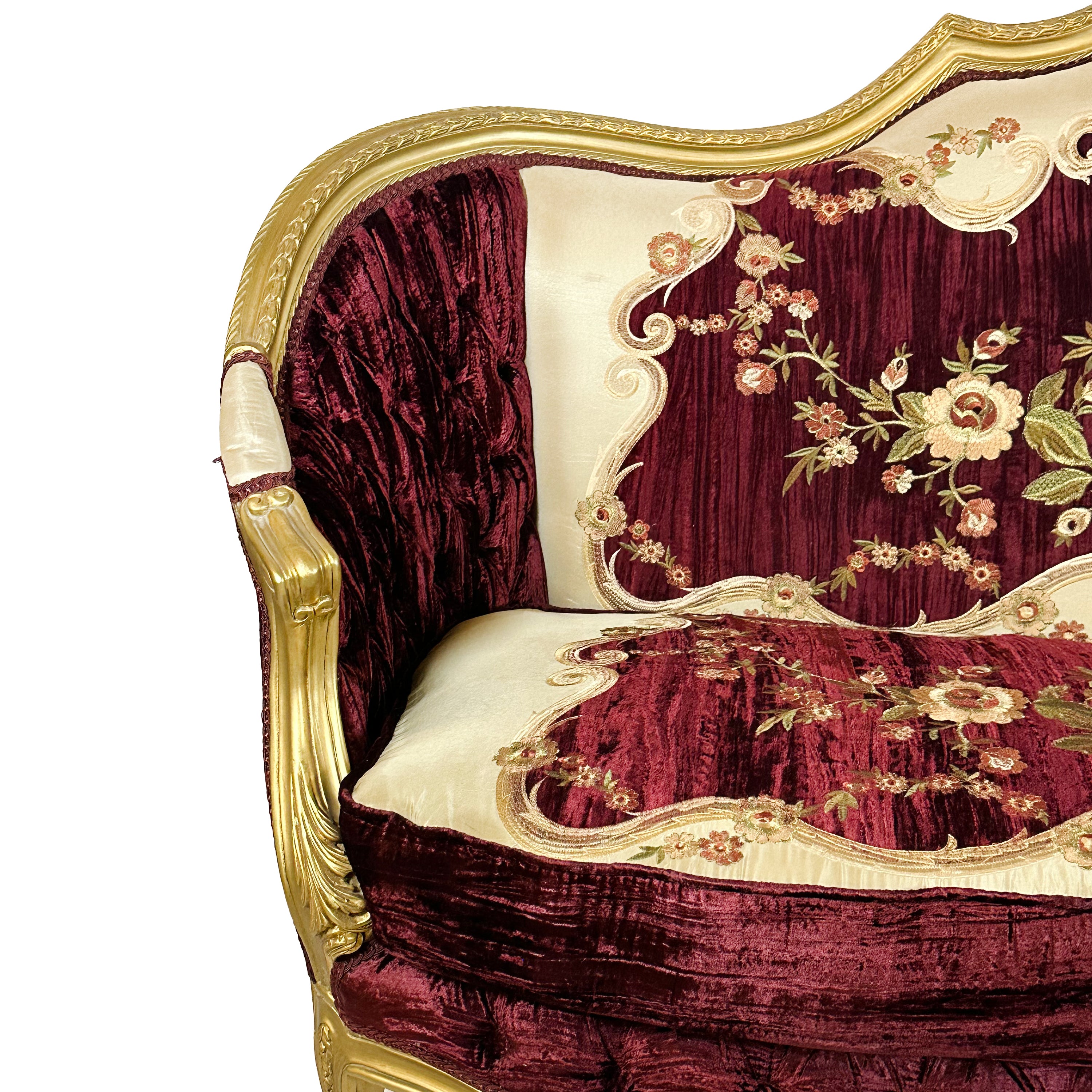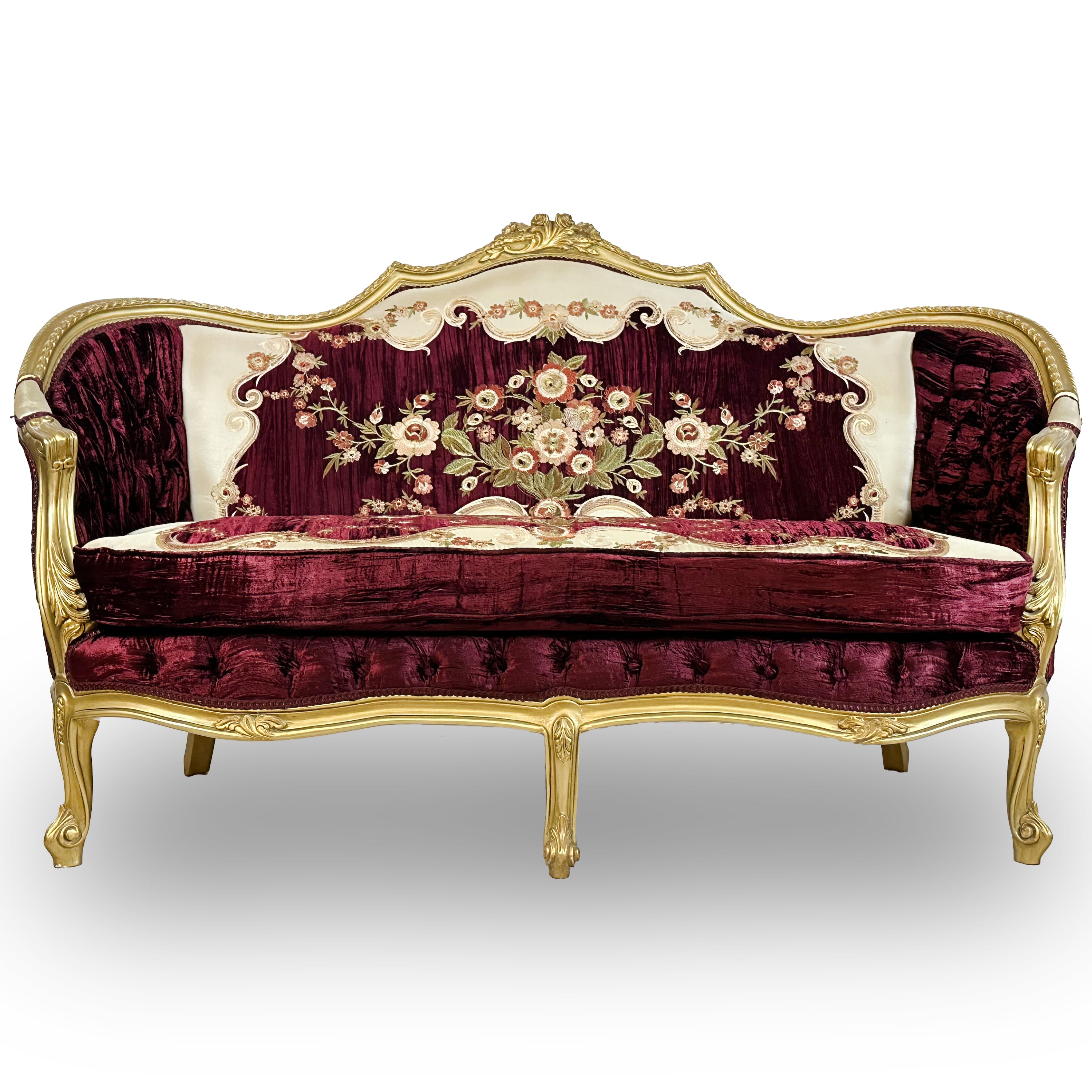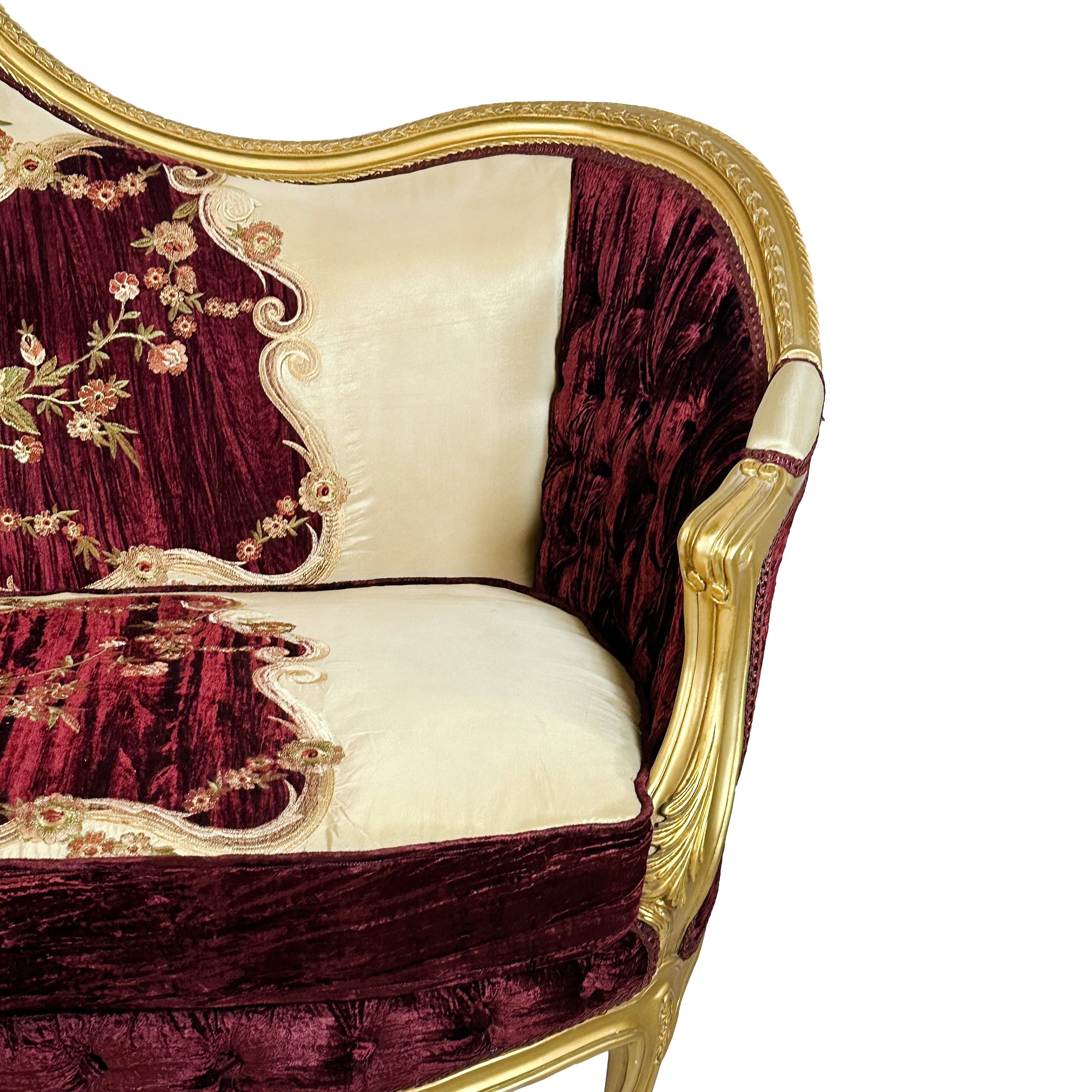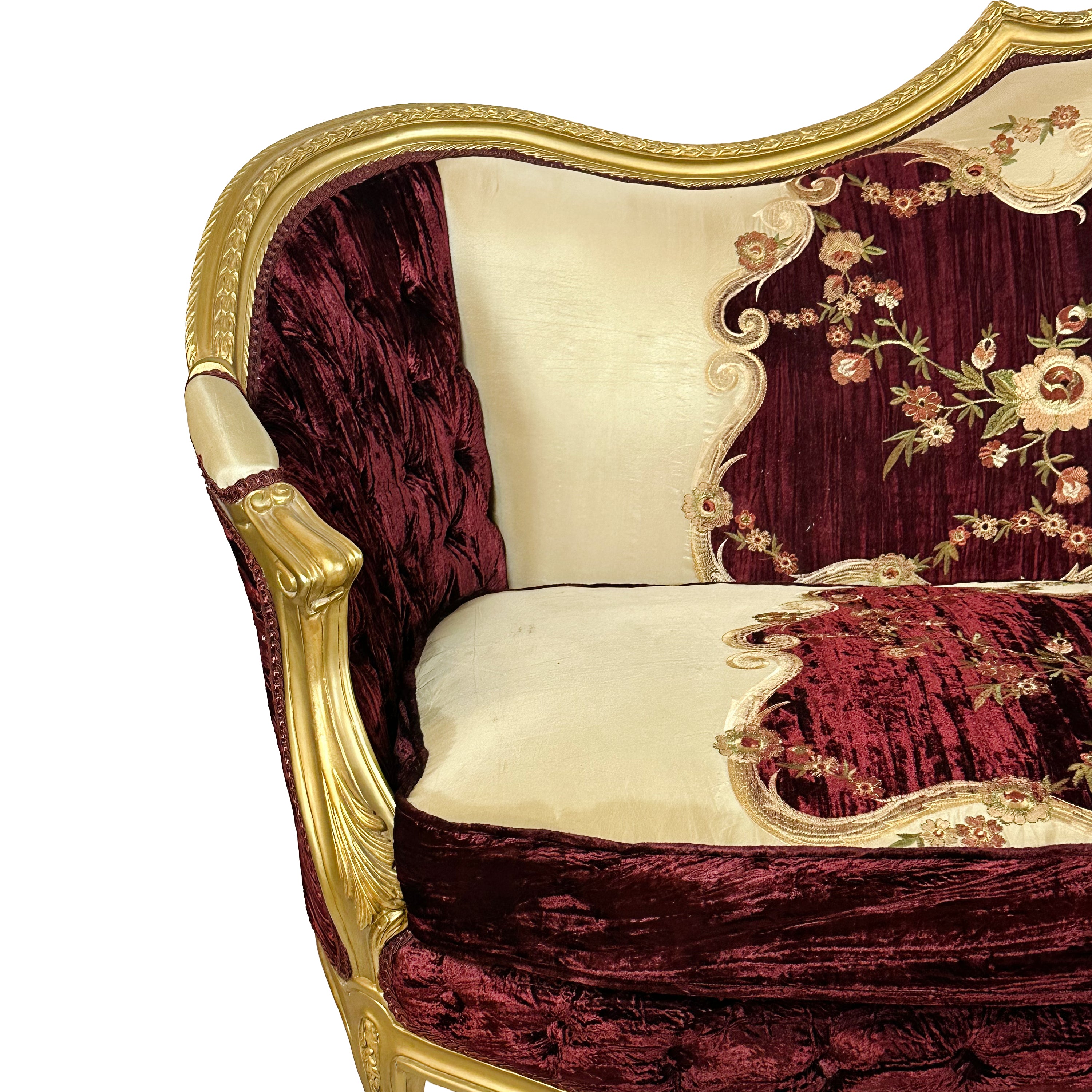 Antique Finish 5 Piece Sofa Set Gold Leaf Velvet & Indian Embroidered Fabric (Sofa + Loveseat +...