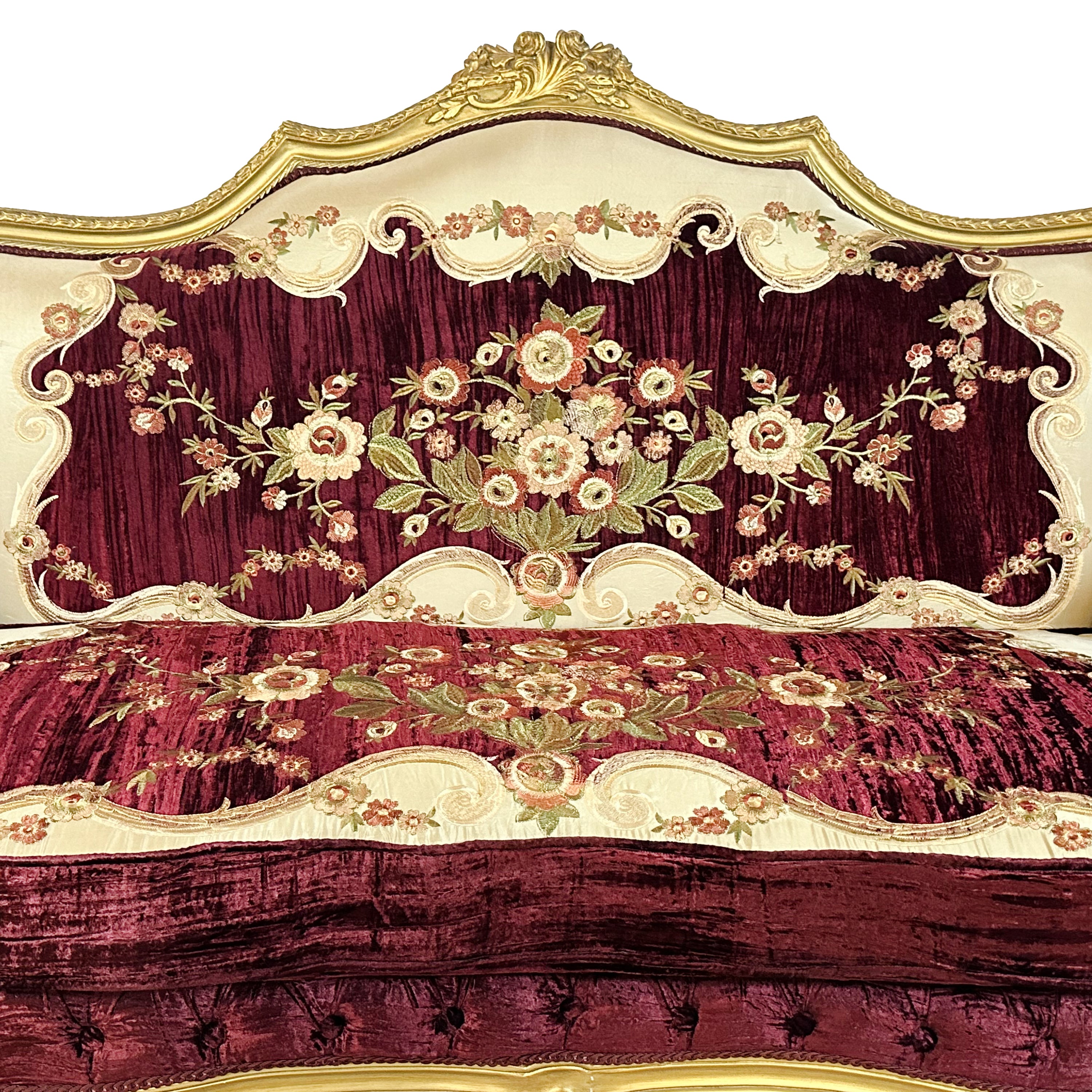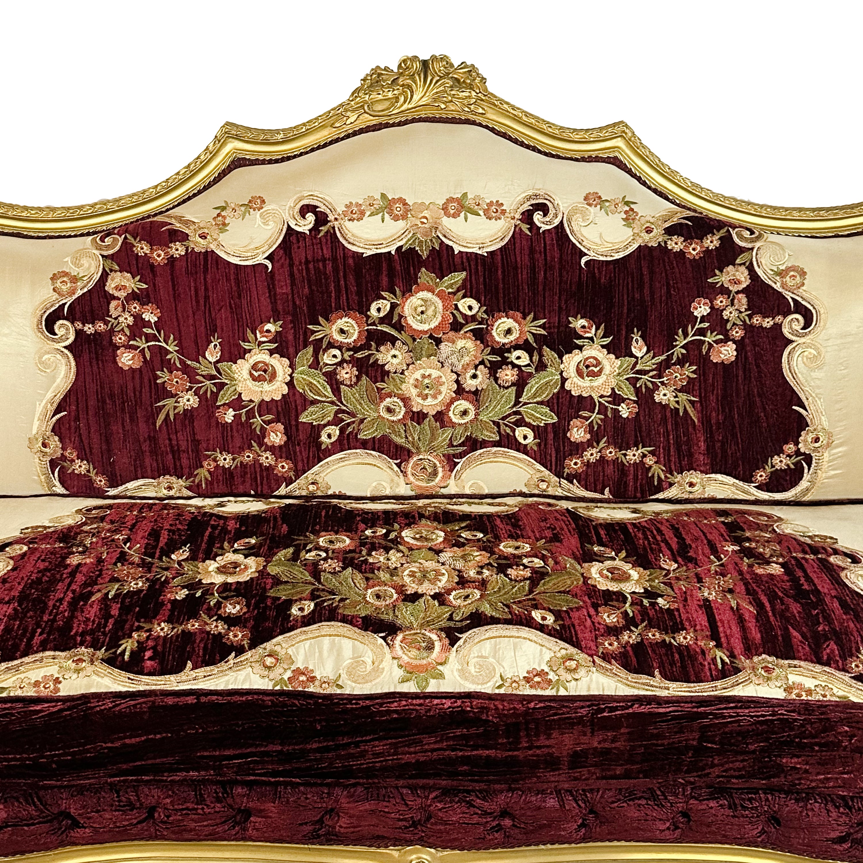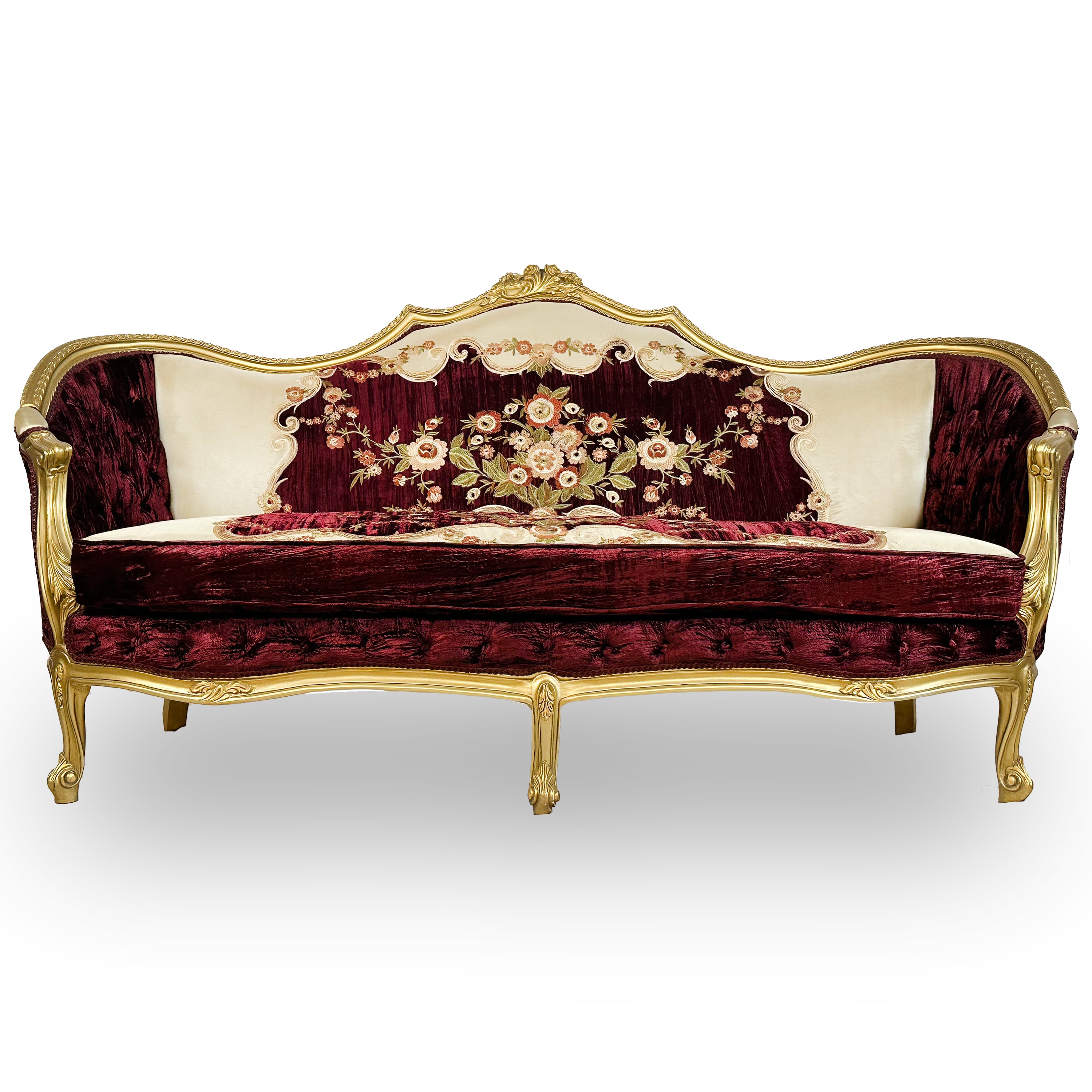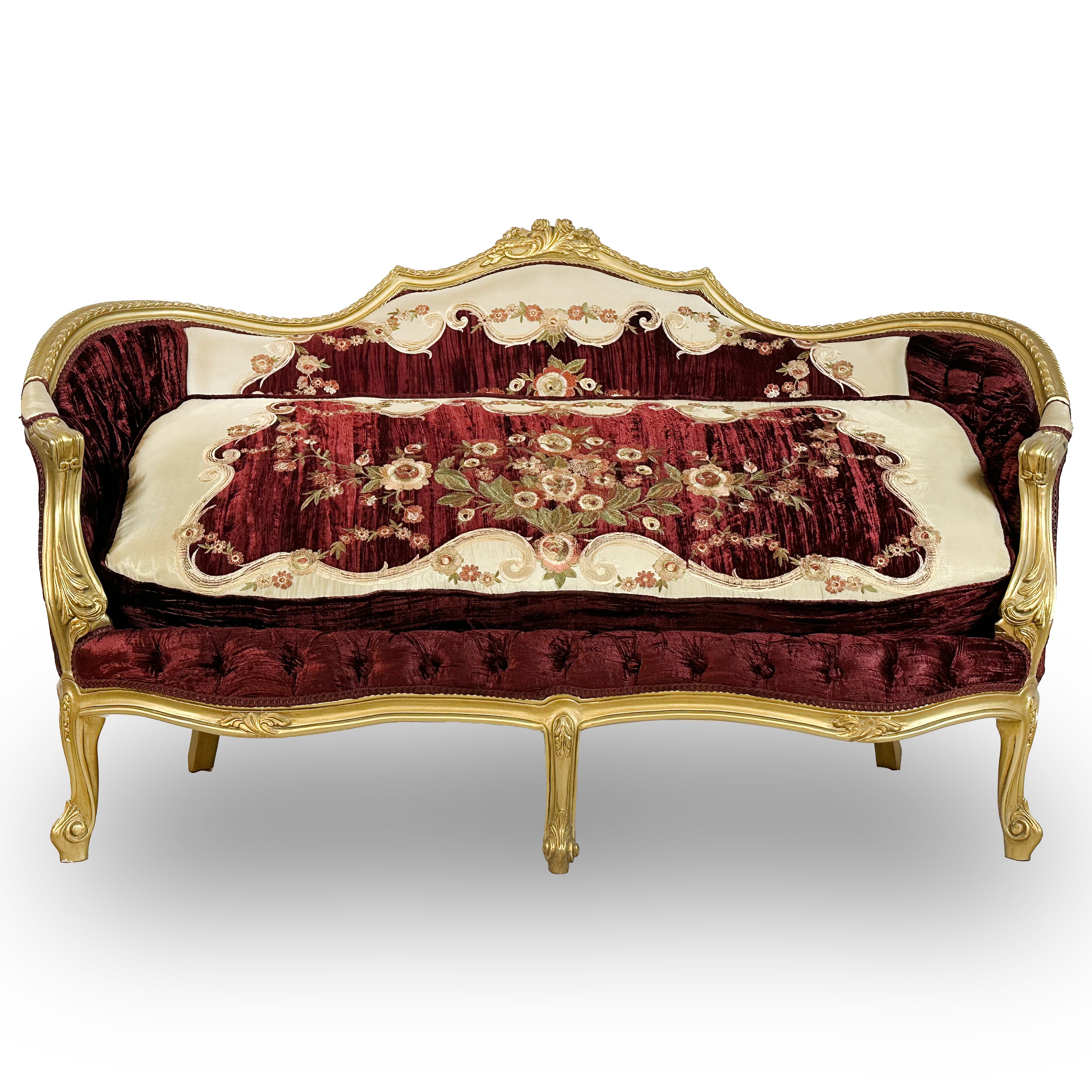Antique Finish 5 Piece Sofa Set Gold Leaf Velvet & Indian Embroidered Fabric (Sofa + Loveseat +...