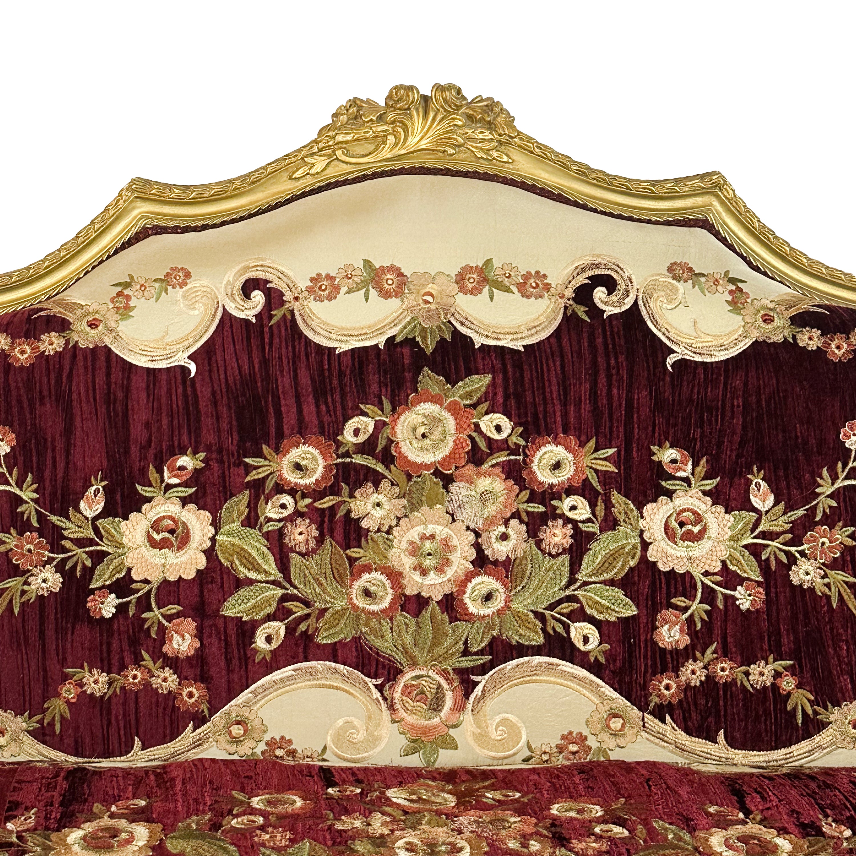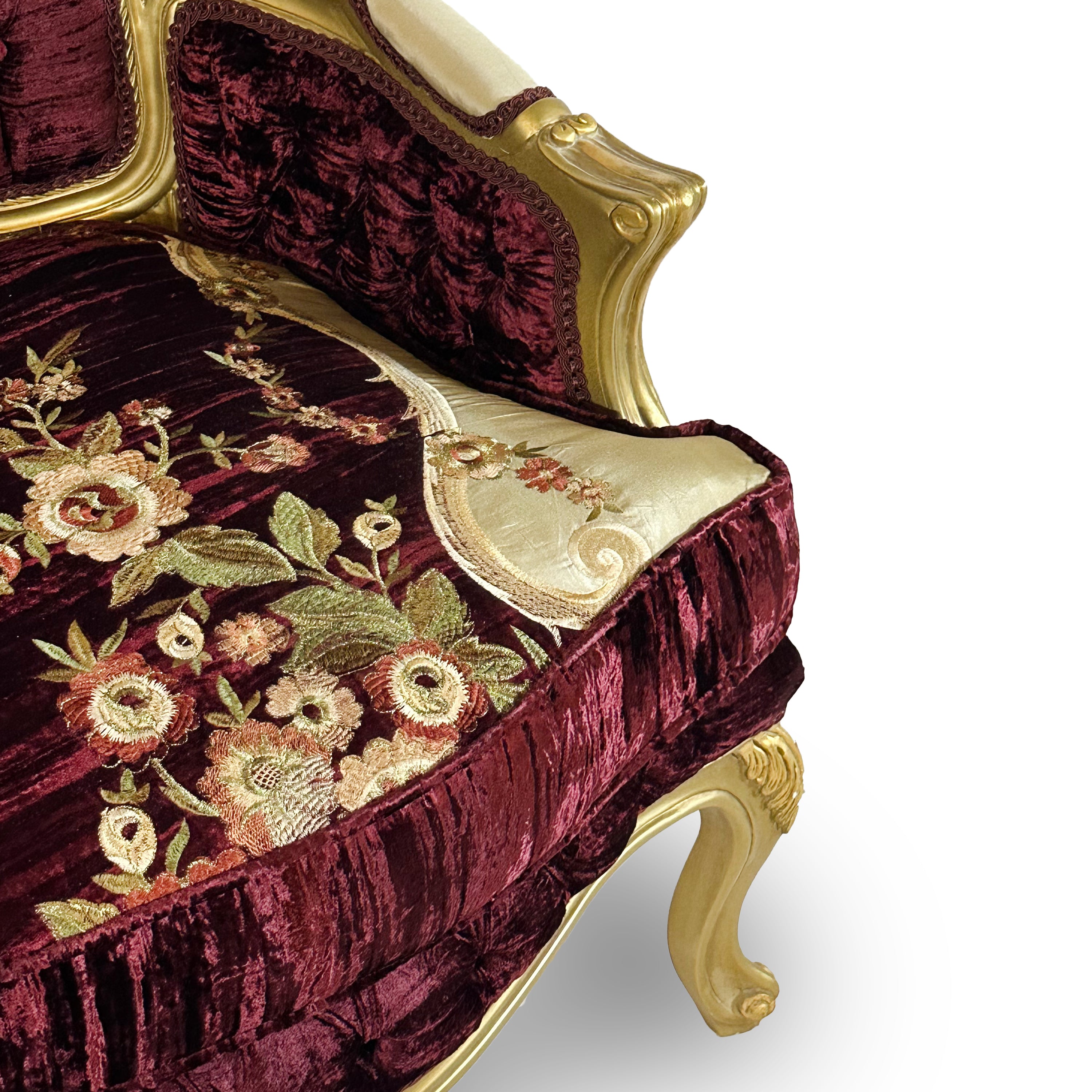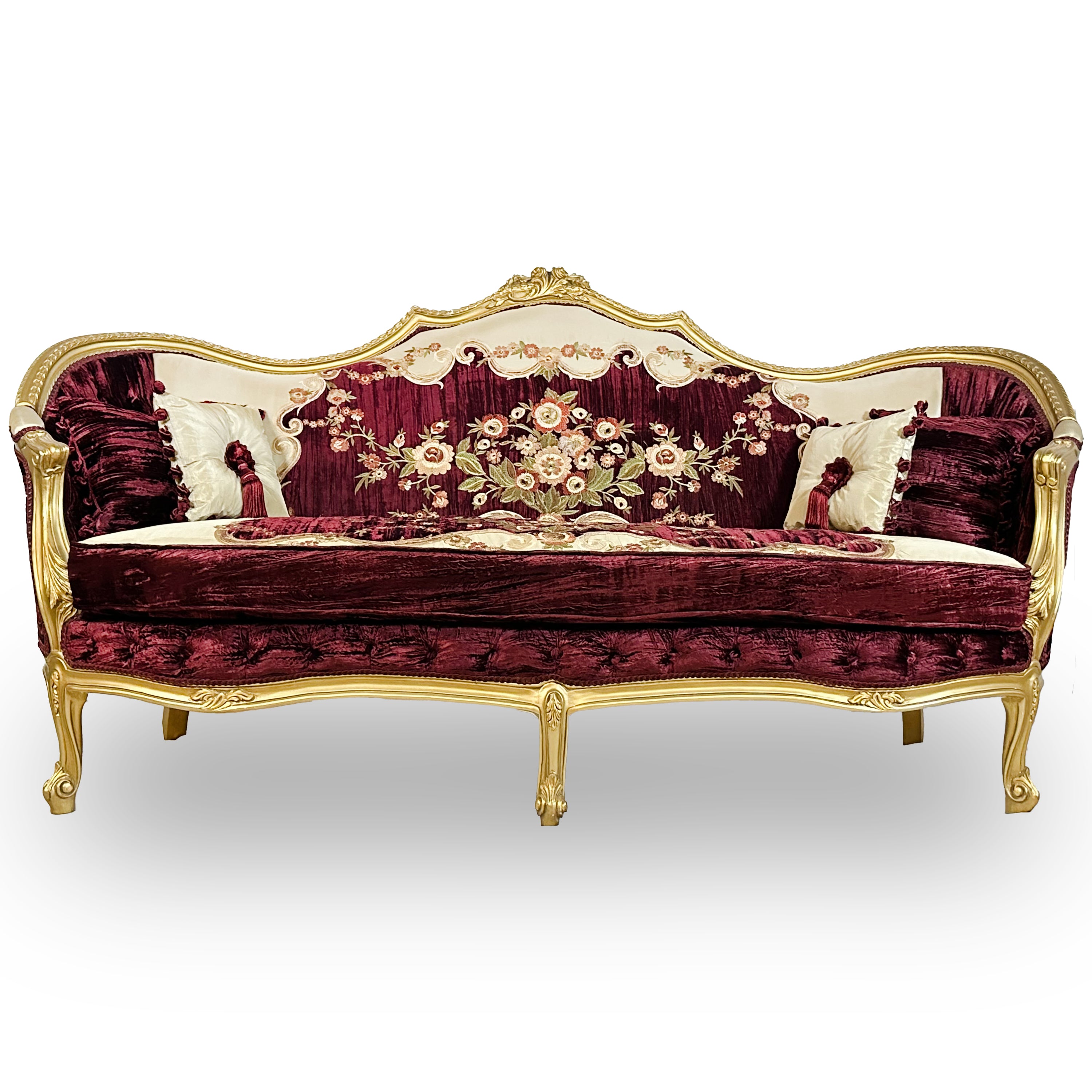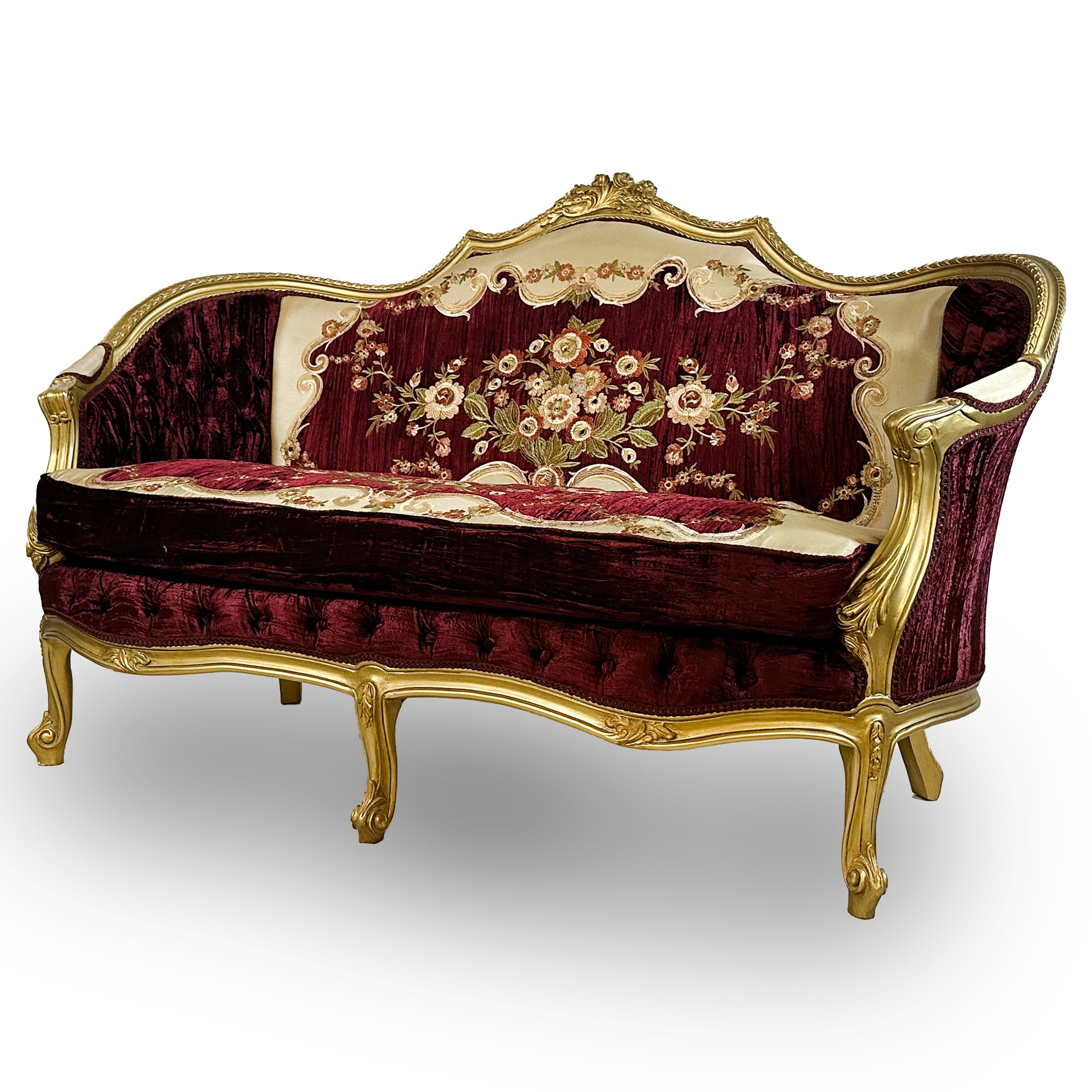 Antique Finish 5 Piece Sofa Set Gold Leaf Velvet & Indian Embroidered Fabric (Sofa + Loveseat +...