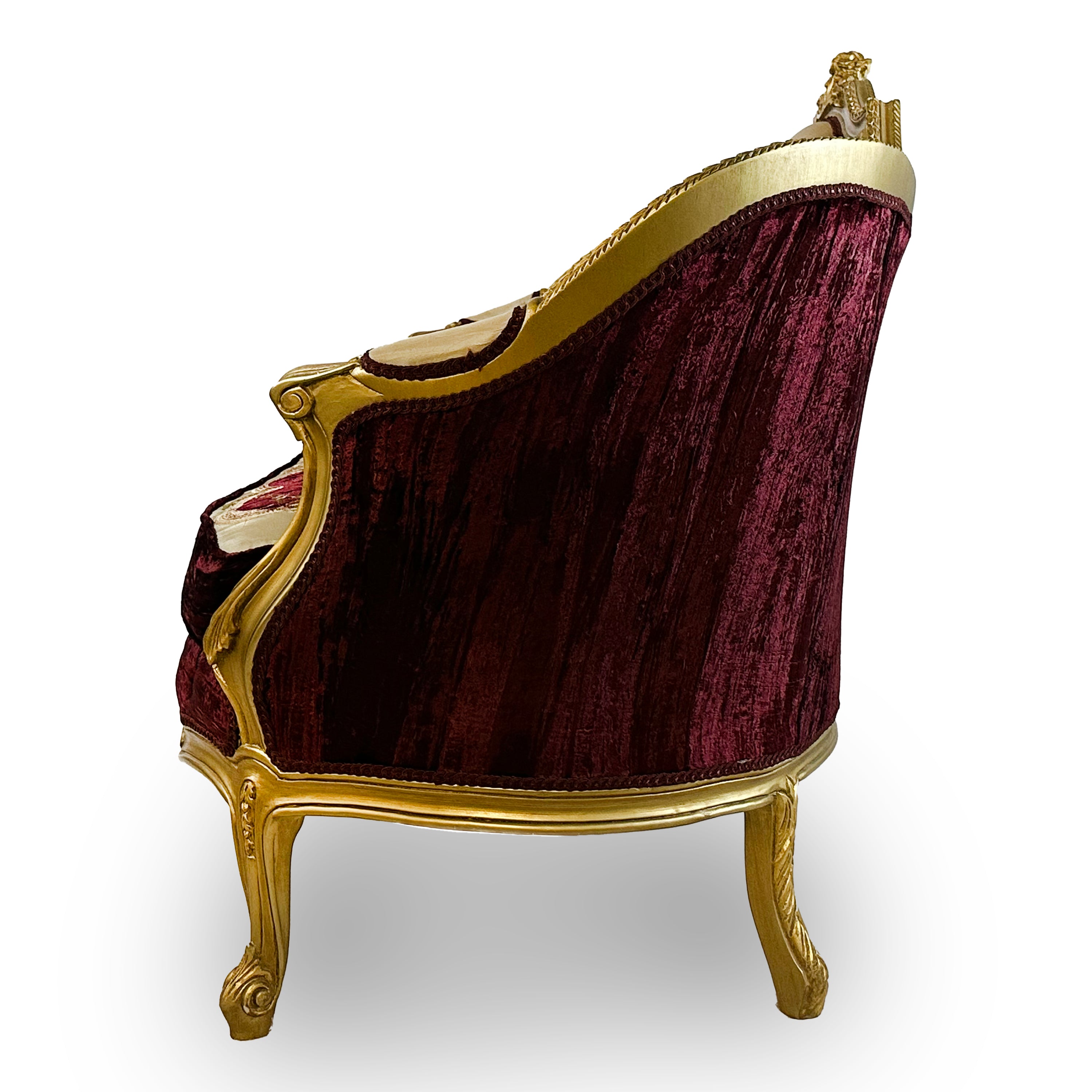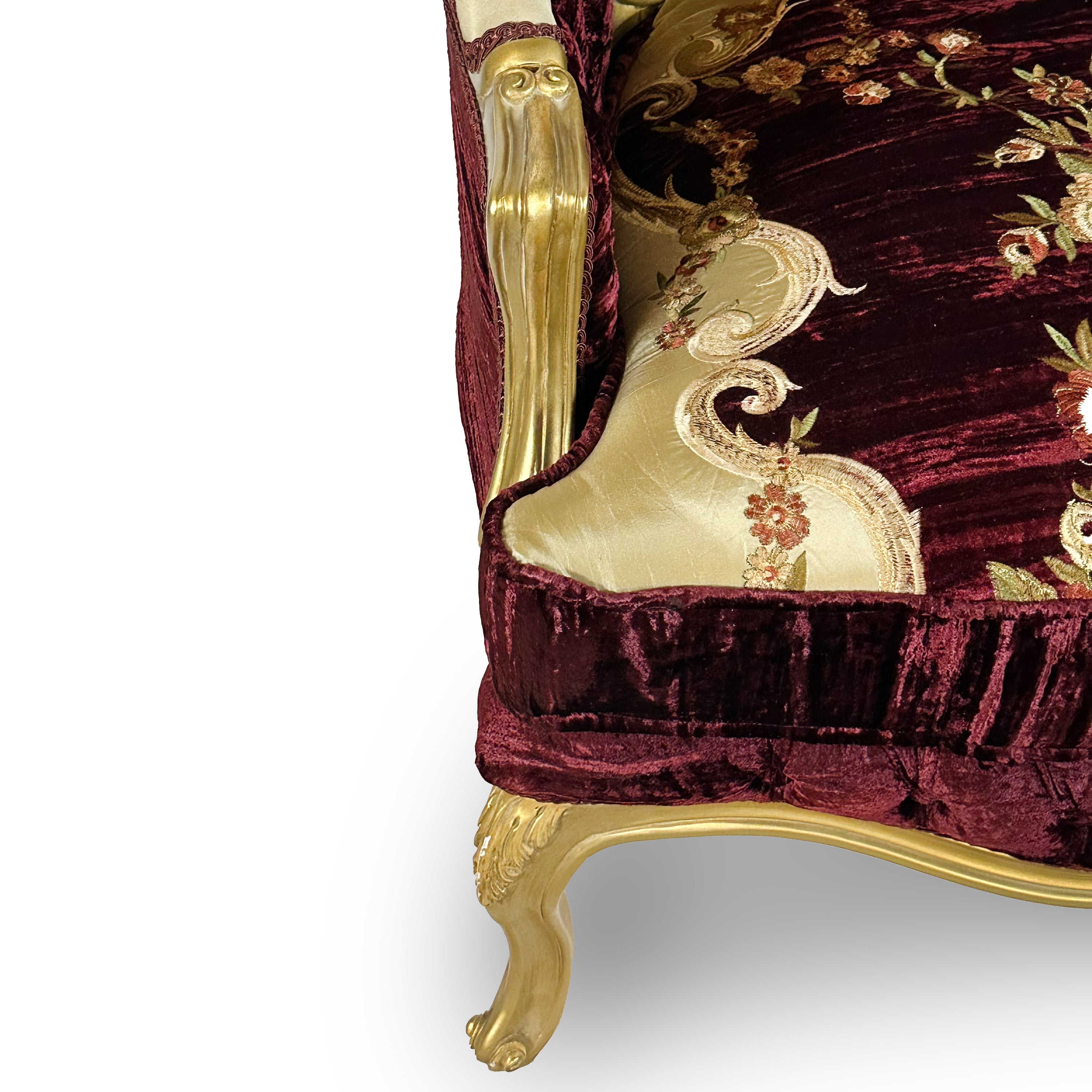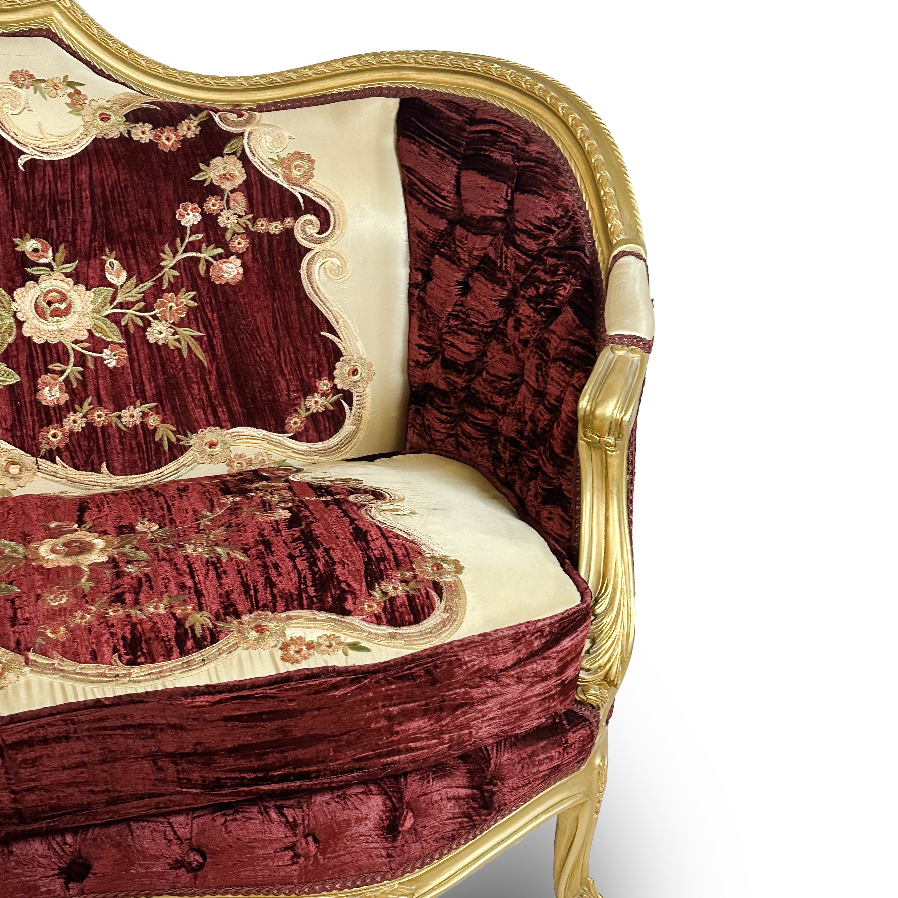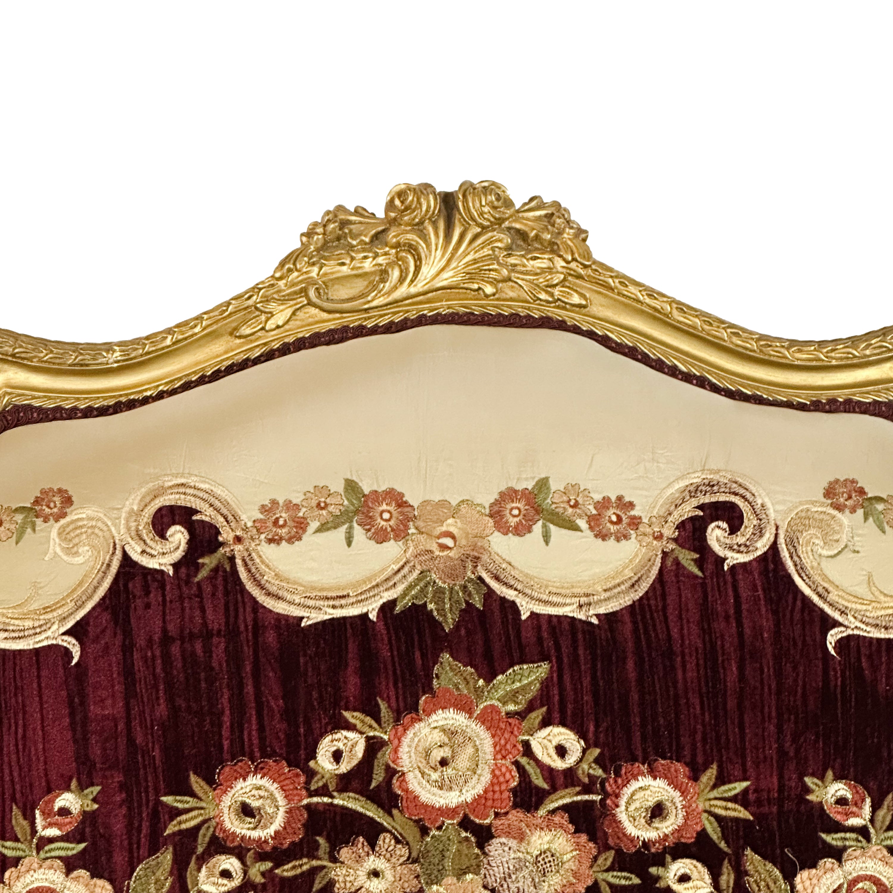 Antique Finish 5 Piece Sofa Set Gold Leaf Velvet & Indian Embroidered Fabric (Sofa + Loveseat +...