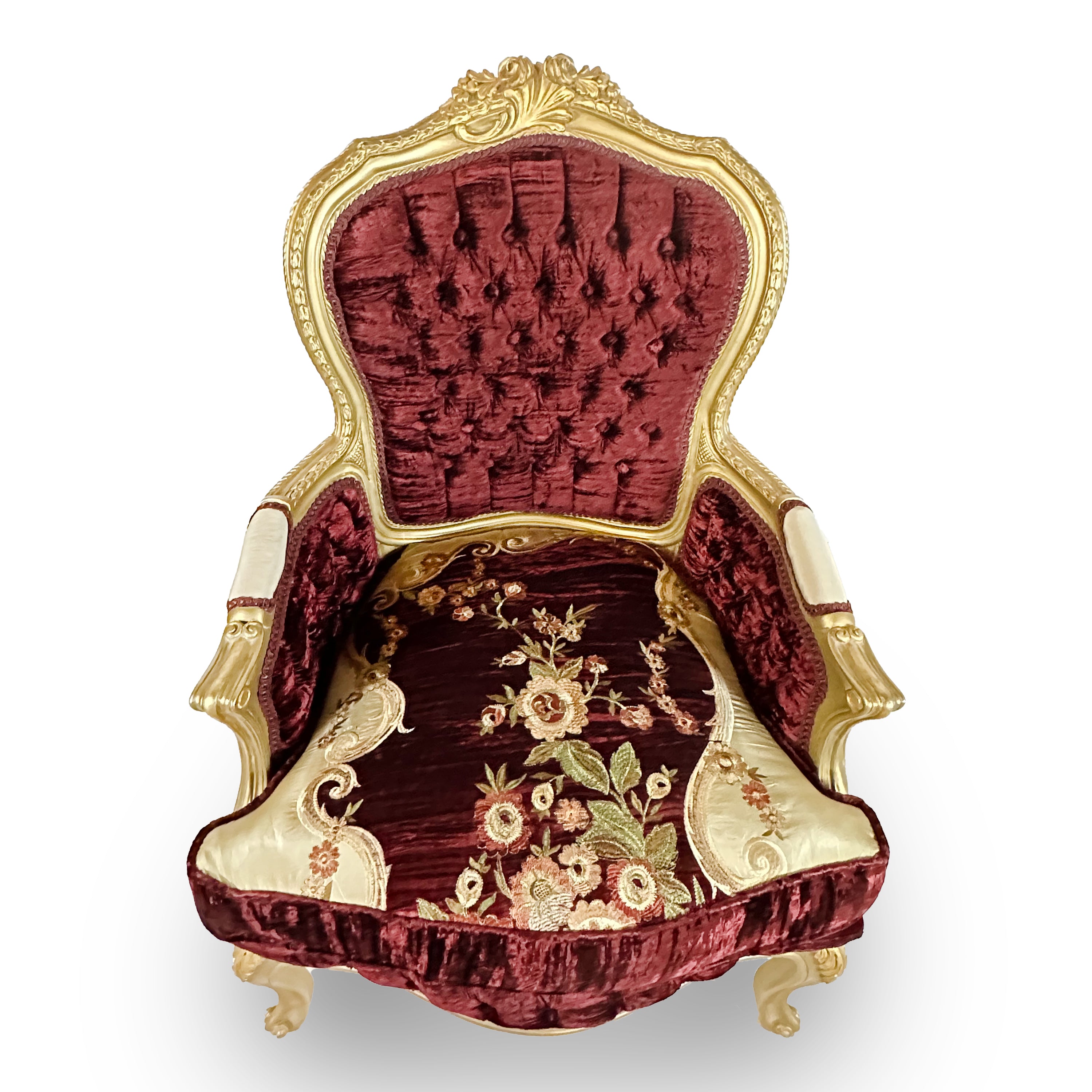 Antique Finish 5 Piece Sofa Set Gold Leaf Velvet & Indian Embroidered Fabric (Sofa + Loveseat + 2 Armchairs + Coffee Table)