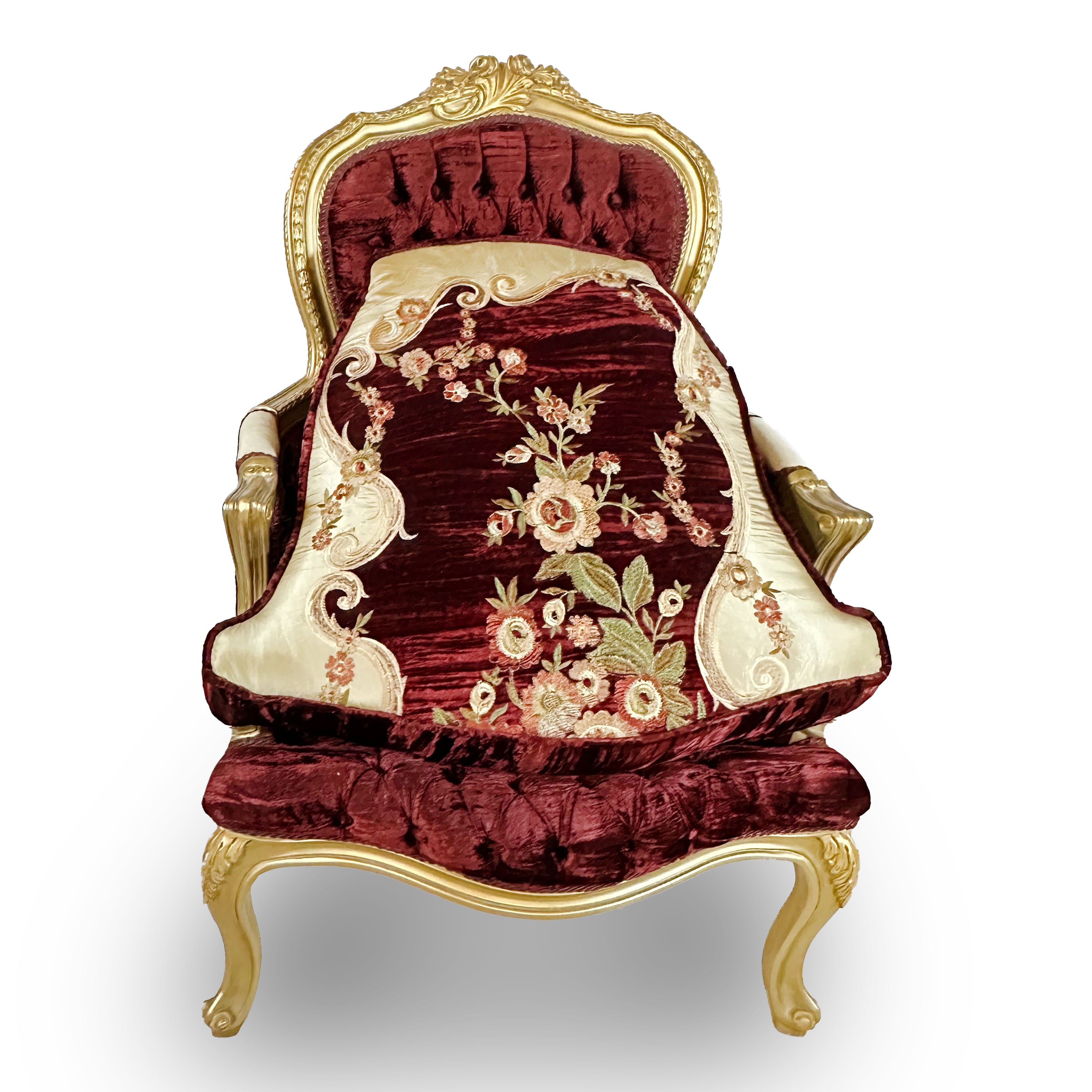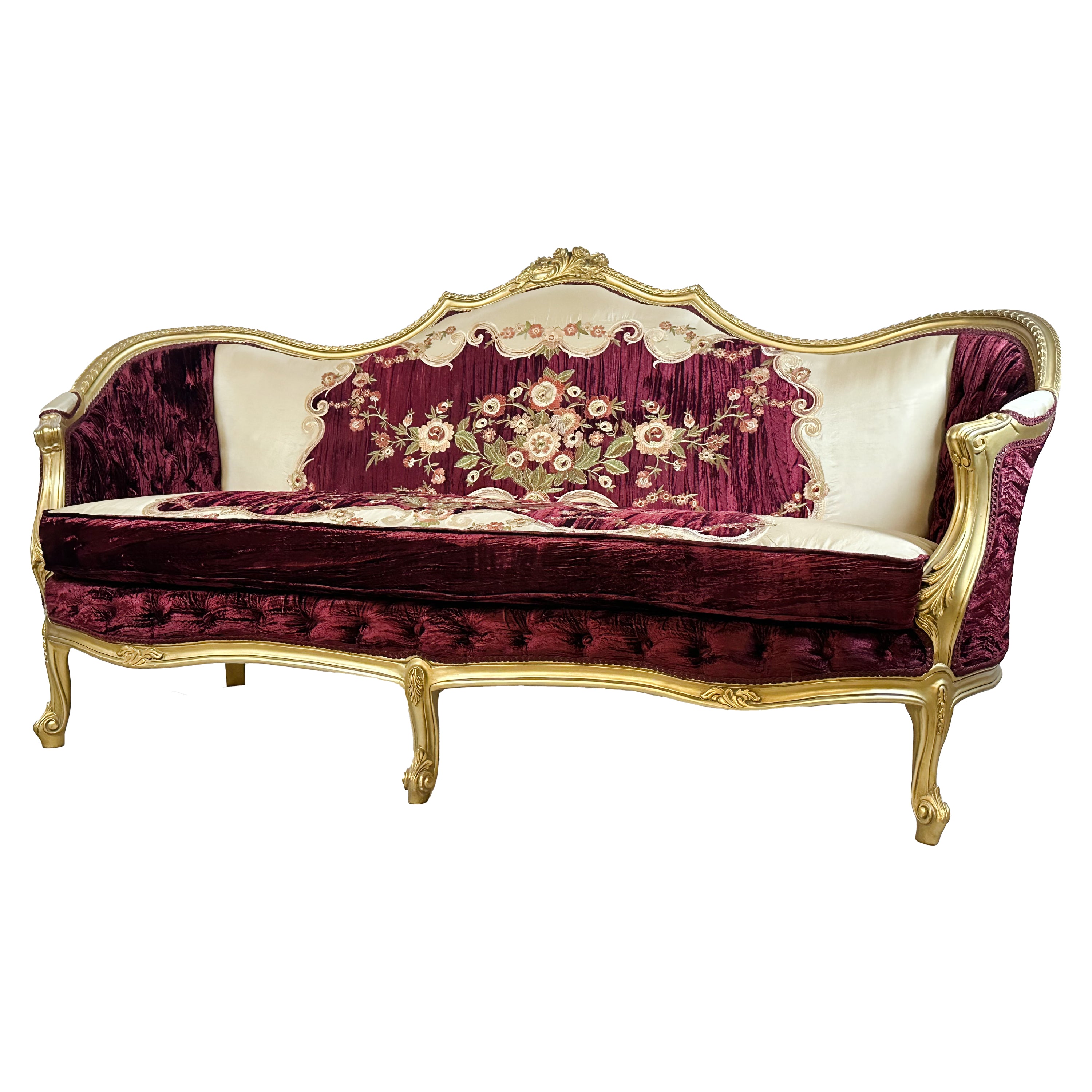 Antique Finish 5 Piece Sofa Set Gold Leaf Velvet & Indian Embroidered Fabric