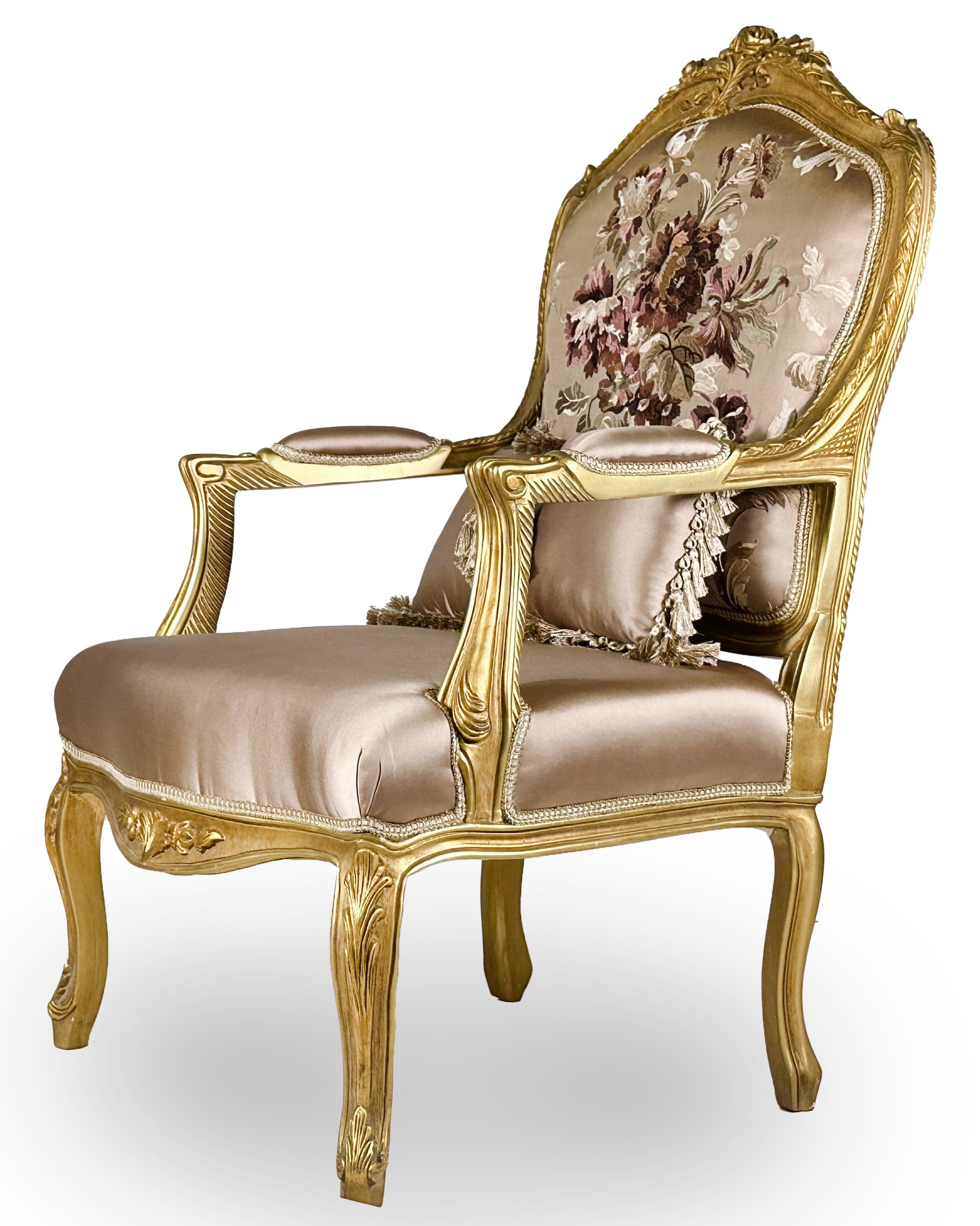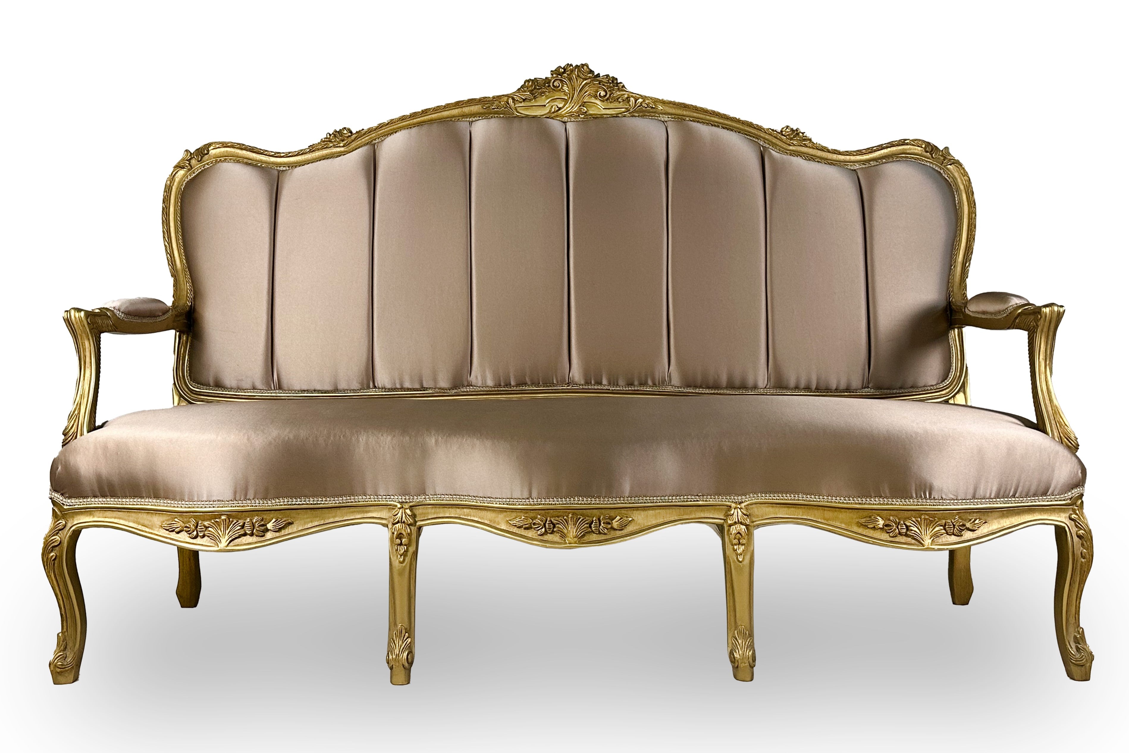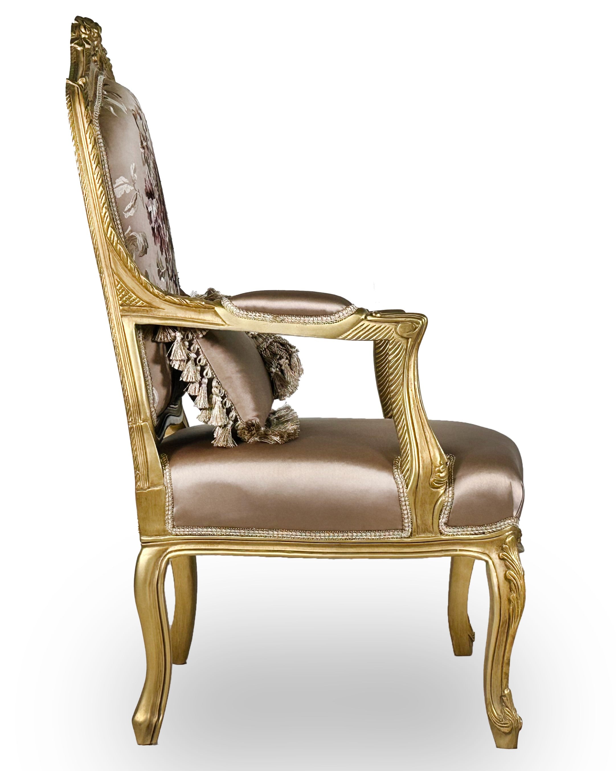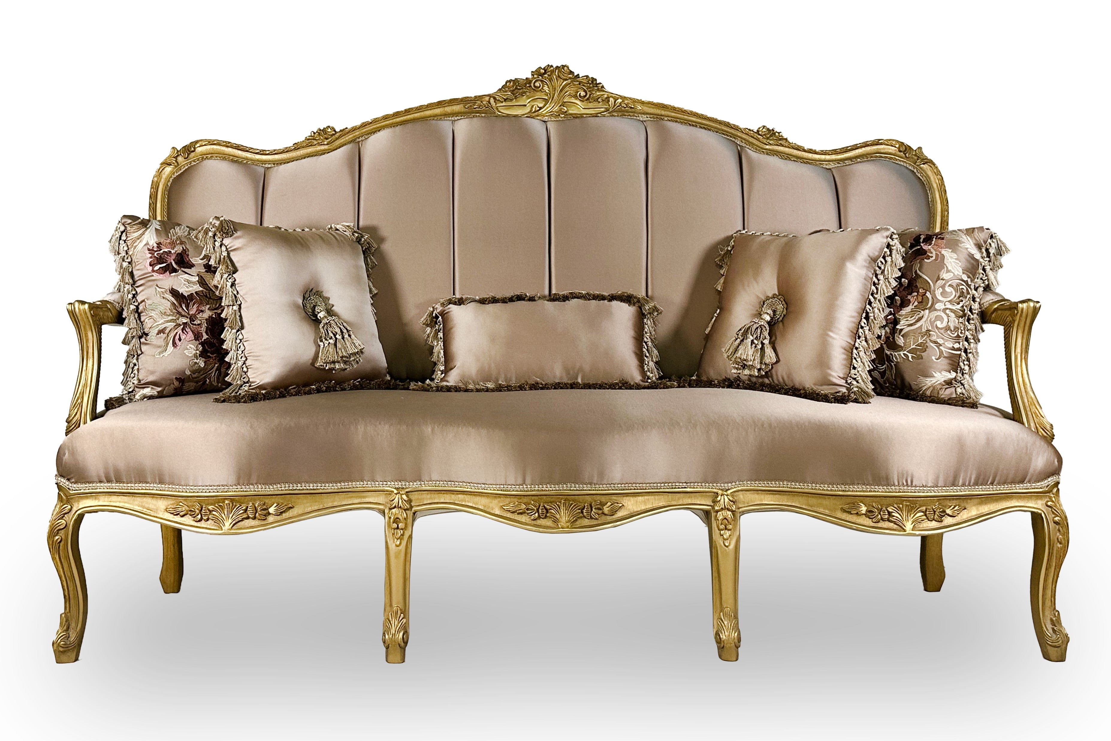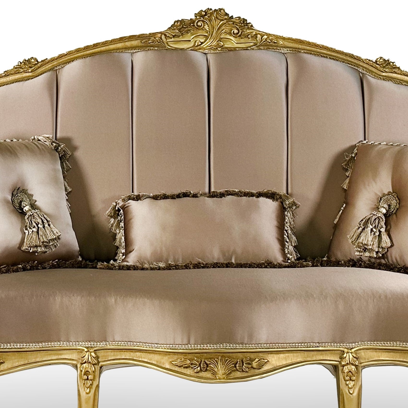 Antique Finish Open Arm 6 Piece Sofa Set Gold Leaf (Sofa + 4 Chairs + Coffee Table)