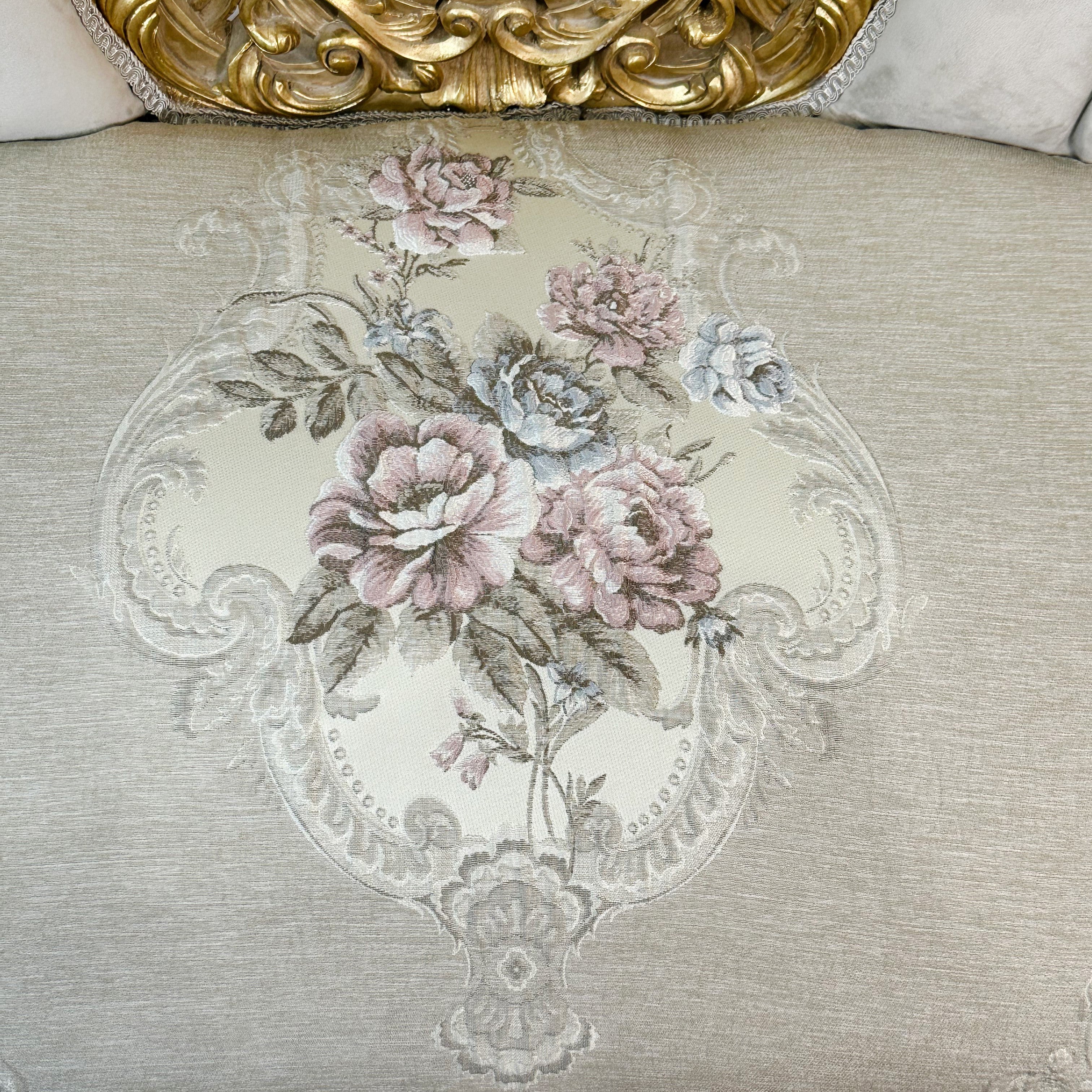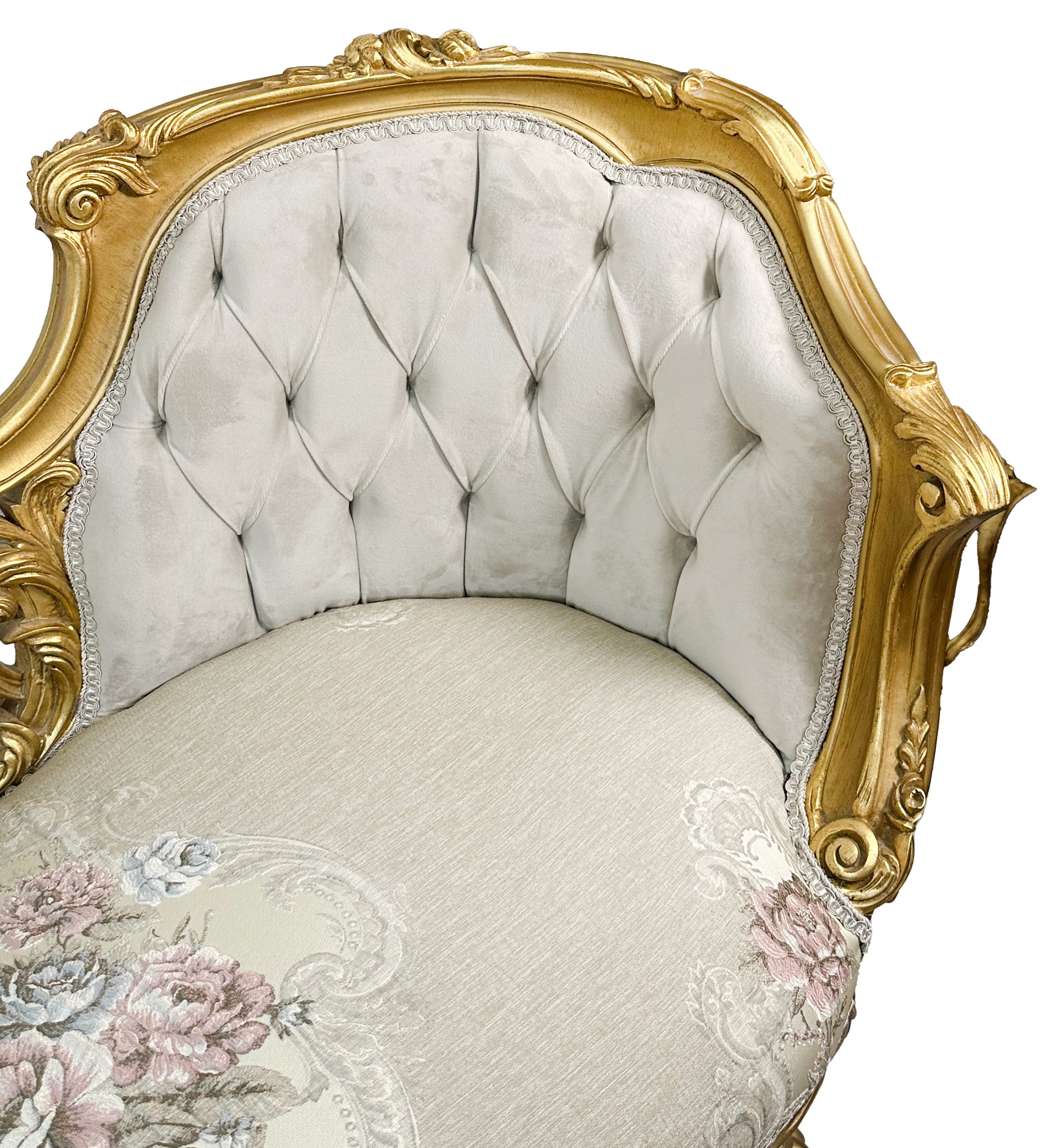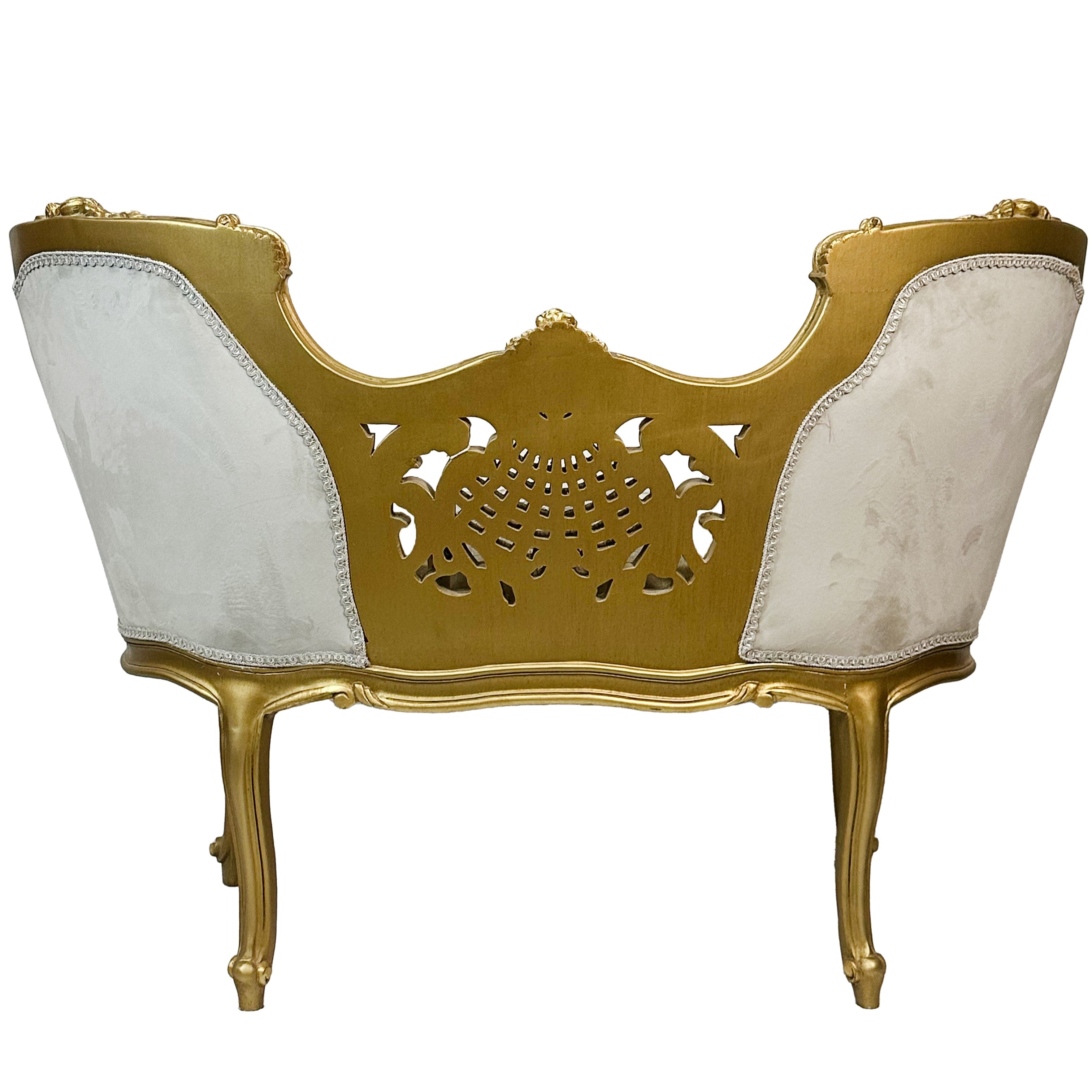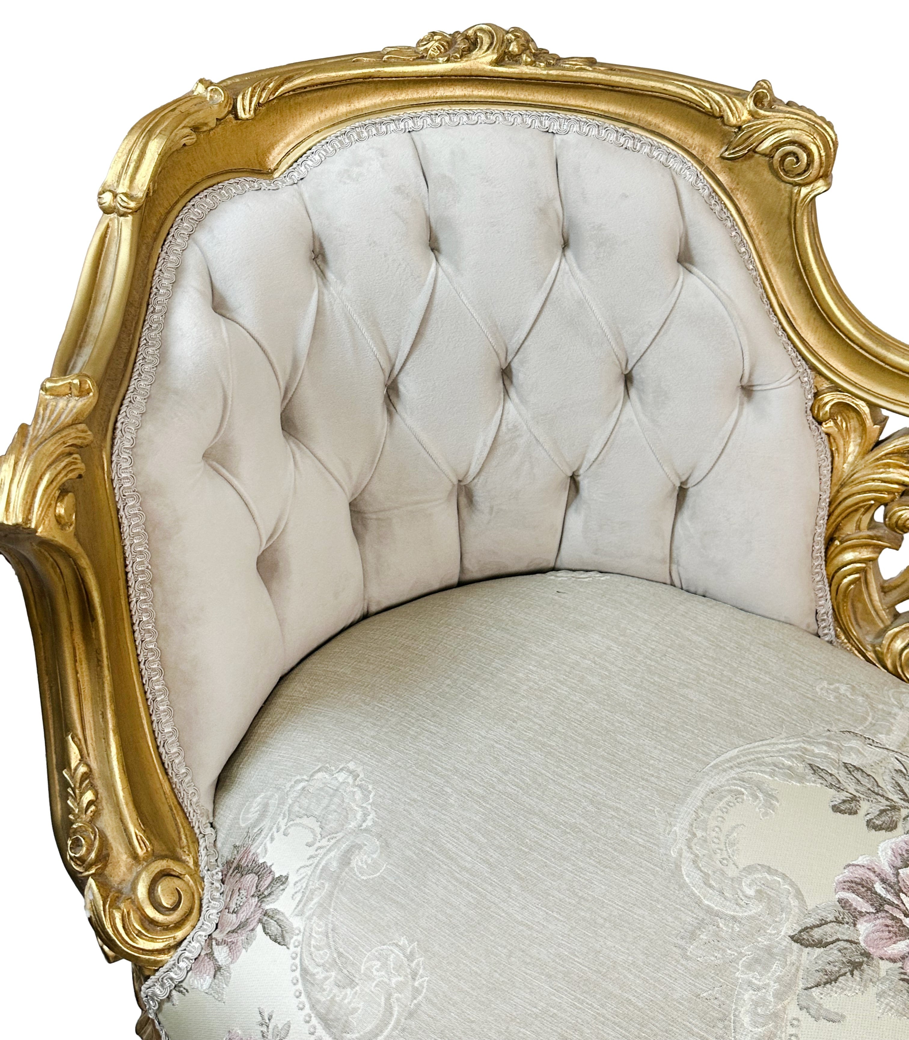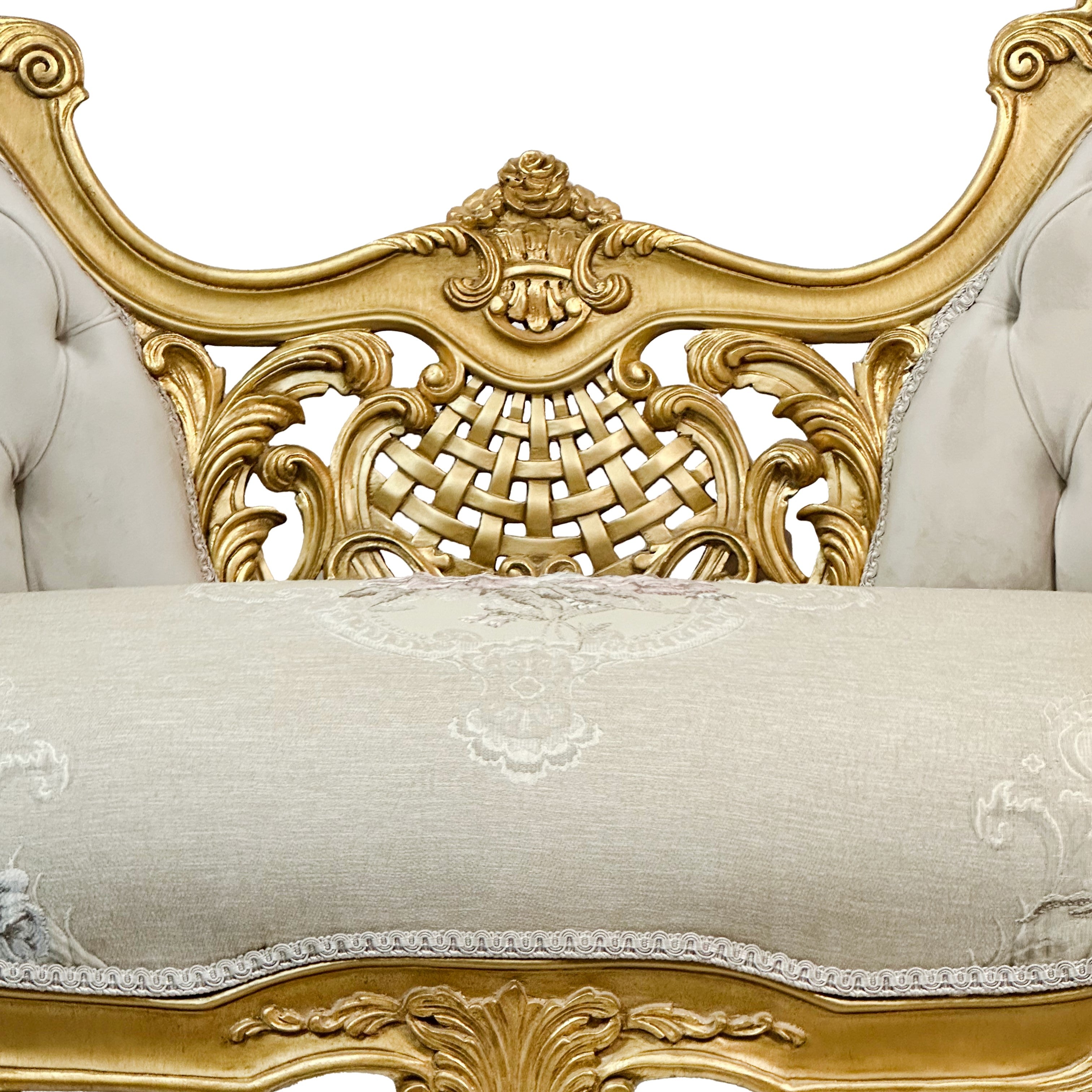 Antique Finish Settee Gold Leaf Depth size: 18"Height size: 27" / 31,5"Wide size: 36" All our fabrics...